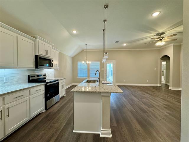Almost New, Move-In Ready! Enjoy this spacious single-story home, just one year old! Featuring 3 bedrooms, 2 bathrooms, and a 2-car garage, this home boasts an open floor plan with elegant wood vinyl flooring throughout. The kitchen is a chef’s dream with granite countertops, under-cabinet lighting, stainless steel appliances, and ample storage. Relax in the primary suite, complete with dual vanities, a separate shower, and a luxurious garden tub. Step outside to a sizable covered patio—perfect for entertaining, hosting BBQs, or enjoying a peaceful morning coffee. Ceiling fans in every room add comfort and style. Located just off Hwy 380 & Interstate 30 and only minutes from L3 Harris in Greenville, this home is part of Greenville’s newest premier neighborhood—an ideal place for your family to settle in and thrive!