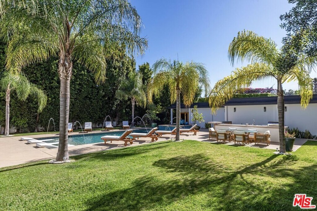 A distinguished estate set on an expansive ~20,000 square foot lot in the heart of the prestigious Beverly Hills Flats, offering exceptional scale, privacy, and timeless elegance.Behind its stately presence, the residence welcomes you with a grand entry leading into beautifully proportioned living spaces designed for both sophisticated entertaining and comfortable everyday living. High ceilings, abundant natural light, and seamless indoor-outdoor flow create an atmosphere that is both refined and inviting.The grounds are truly a standout featuredeep, lush, and privateanchored by a resort-style heated pool and spa, complemented by a cabana suite, outdoor BBQ center, and multiple areas for lounging and dining. The setting evokes a private retreat while remaining moments from the best of Beverly Hills.Interior highlights include expansive formal rooms, fireplaces, and integrated sound throughout, all crafted with quality materials and attention to detail.An exceptional opportunity to lease a classic Beverly Hills estate on one of its most desirable streetswhere scale, location, and lifestyle come together effortlessly.Flexible lease terms available. Please inquire for availability and pricing. Cryptocurrency payments considered. MLS# 26669639