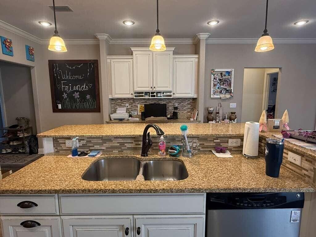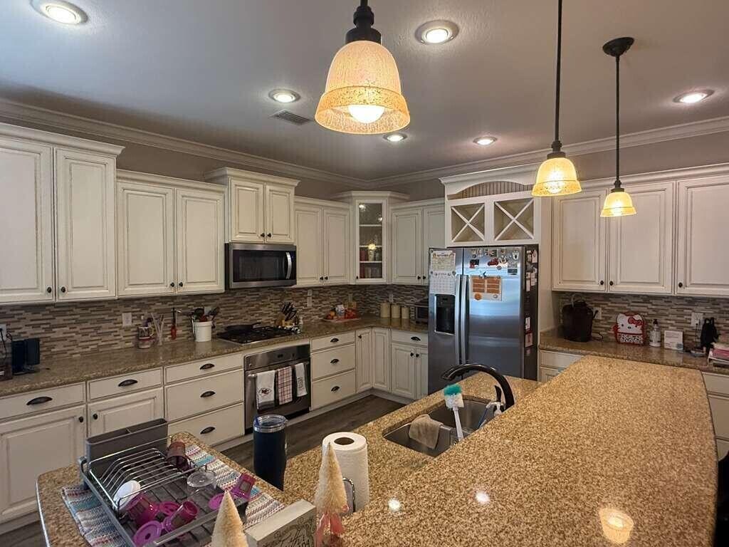 This move-in-ready home offers a stunning layout with 3 bedrooms, 2 bathrooms, and a dedicated office all on the main level, plus a versatile bonus room upstairs. Perfectly situated in the heart of Niceville, the location provides a convenient commute to local bases, beautiful beaches, and nearby shopping centers. From the moment you step inside, you'll feel right at home with its warm, inviting atmosphere and thoughtful upgrades throughout.The home features a split floor plan and a spacious kitchen with granite countertops, ample cabinet space, and a large island that opens to the living room, ideal for entertaining friends and family. The primary suite includes a massive walk-in closet with custom shelving and drawers, leading to a luxurious bathroom complete with double vanities,