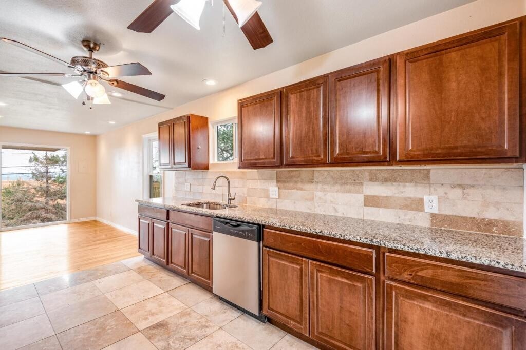 A distinctive house is perfect for anyone who wants to live in a sunny, spacious home in a terrific location, "Comfortable living in scenic Skyway." 4 Bedroom 2 Full Bath Home with that Colorado flare! This ranch home with a finished basement provides 2583SF, making it perfect for anyone who wants a little extra space. The roomy kitchen features dark cherry cabinets, quartz countertop, ceramic back splash, Stainless steel appliances, dishwasher, microwave oven, range oven, and refrigerator, making it easy to cook and entertain guests. The Dining room and living room are divided by a two-way wood burning fireplace, each have a set of French doors leading out to the deck and a wall of windows for an abundance of natural light. The finished basement has dual functional rooms. There are 3 bedrooms in the basement, one of the rooms is a bedroom, one of the rooms has built in shelving and can be used as an office as well as a bedroom, and the final bedroom has a fireplace, sliding glass door leading to patio and could be used as a family room. Additionally, the house has washer dryer hookups, making laundry day a breeze in the comfort of your own home. The house is heated with natural gas, which is not only efficient but also eco-friendly. The 2-car garage offers ample space to park your car and keep it safe from the elements. Smoking is not allowed in the house, which ensures that the air quality is always fresh and clean. Pets are allowed with the owner\'s approval. This property is within driving distance Bear Creek Park, ample hiking options and downtown Colorado Springs, Manitou, and Old Colorado City. This home is close to shopping, schools, parks, and Fort Carson. Great City Views! Ready Now! Call to schedule a showing TODAY!!