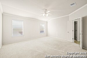 This charming one-story home in Westcreek subdivision off of Talley Road, sits on a desirable corner lot and offers 3 bedrooms and 2 full baths with a well-designed, open floor plan. The family room with a cozy fireplace flows seamlessly into the eat-in kitchen, creating an inviting space for everyday living and entertaining. The spacious primary suite includes crown modeling, dual vanities, a separate shower and soaking tub, and a large walk-in closet. Two additional bedrooms share a hall bathroom, and a built-in desk in the hallway adds a convenient workspace. Step outside to enjoy the covered patio and fenced backyard, perfect for relaxing or hosting guests. Ideally located near shopping, dining, and schools, this home offers both comfort and convenience.