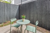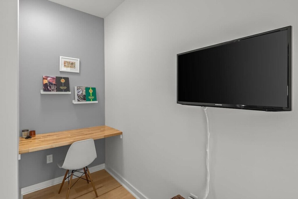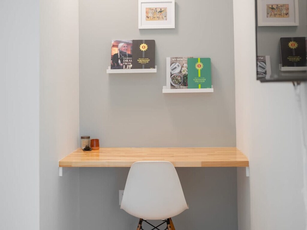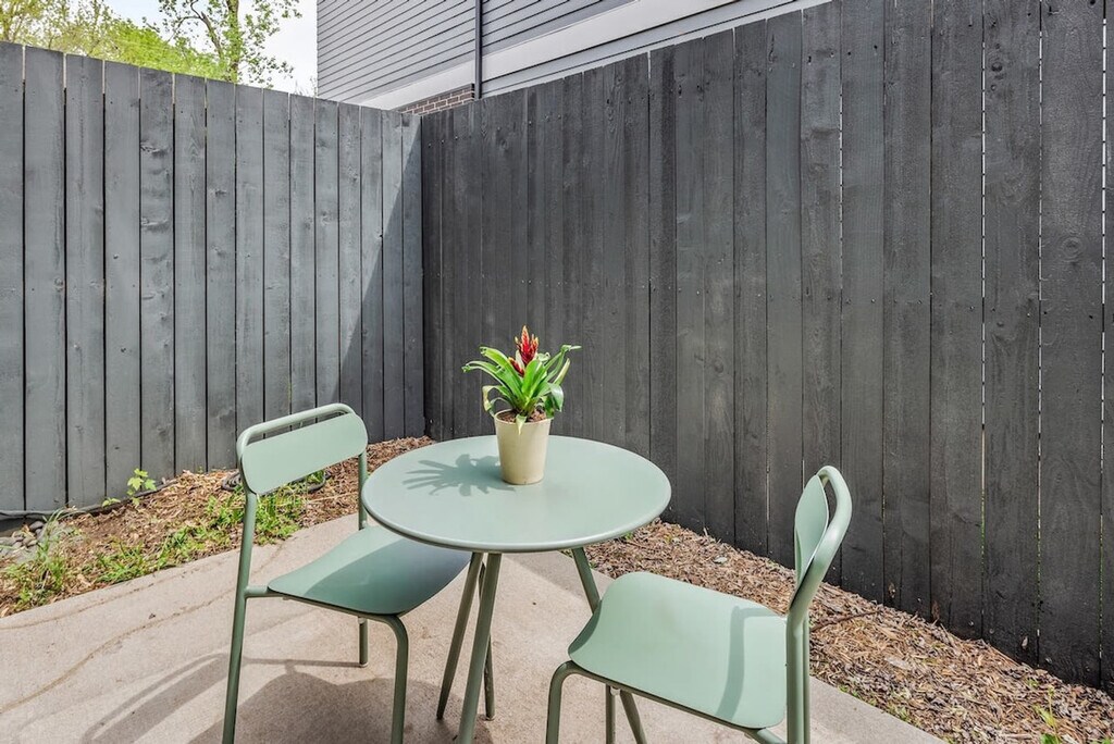 Welcome to a modern 2-bedroom townhouse in the heart of Bentonville, where pet-friendly comfort meets convenience. This beautifully designed home offers 2.5 bathrooms and is perfect for weekend getaways, extended stays, and workations. Feel at home with high-speed Wi-Fi, a dedicated workspace, and a fully equipped kitchen with an outdoor dining area. Step into an elegant living space with plush seating, a Smart TV, and a cozy, contemporary vibe. The open-plan living area is perfect for relaxing or catching up on work. Upstairs, you'll find two spacious bedrooms, each with a queen-size bed and premium bedding, along with private bathrooms. A convenient half-bath is located downstairs for guest use. The modern kitchen features high-end appliances and all the essentials for cooking like a pro. Enjoy meals at the elegant dining table or in the private yard, where you can sip coffee on the patio while your pets play. Bring your furry friends along, as up to two housebroken dogs are welcome with a pet fee of $75 per pet per stay. The fenced yard offers room for pets to play, and dogs must be crated when left alone and kept off the furniture. Free on-site parking and additional street parking are available for your convenience. Located in the artistic heart of Bentonville, this townhouse is just minutes from world-class museums like the Crystal Bridges Museum of American Art, trendy eateries, cafes, and bars. Enjoy walking and biking trails for outdoor exploration, and experience the vibrant local dining and nightlife scene. Whether you're here for culture, cuisine, or the trails, this townhouse is your perfect home base. Quiet hours are from 9 PM to 8 AM to ensure a peaceful environment. This is a smoke-free home, and smoking indoors will incur a charge for smoke remediation, which can exceed $1,000. Parties or events are strictly prohibited unless pre-arranged, and unregistered overnight guests will incur a $50 fee per night. Late check-outs without pre-approval will result in a $100 fee, and if more than 90 minutes late, the greater of $250 or the full rate for another night will be charged. Early check-ins are not permitted unless pre-arranged. Please do not use bathroom towels to clean bikes, as replacement charges will apply. All guests must be verified ahead of the stay, and check-in instructions will be provided upon successful completion of the guest portal. The townhouse is equipped with high-speed Wi-Fi and a dedicated workspace, making it ideal for remote work retreats. Whether you're catching up on emails or streaming your favorite shows, you'll have everything you need to stay connected. [SI]