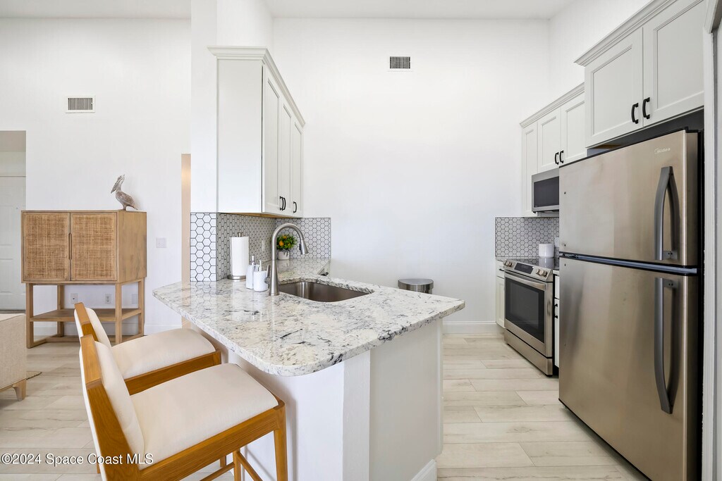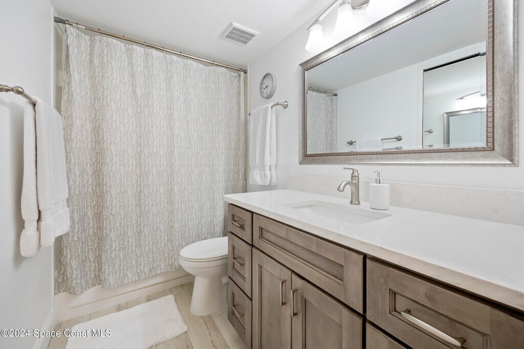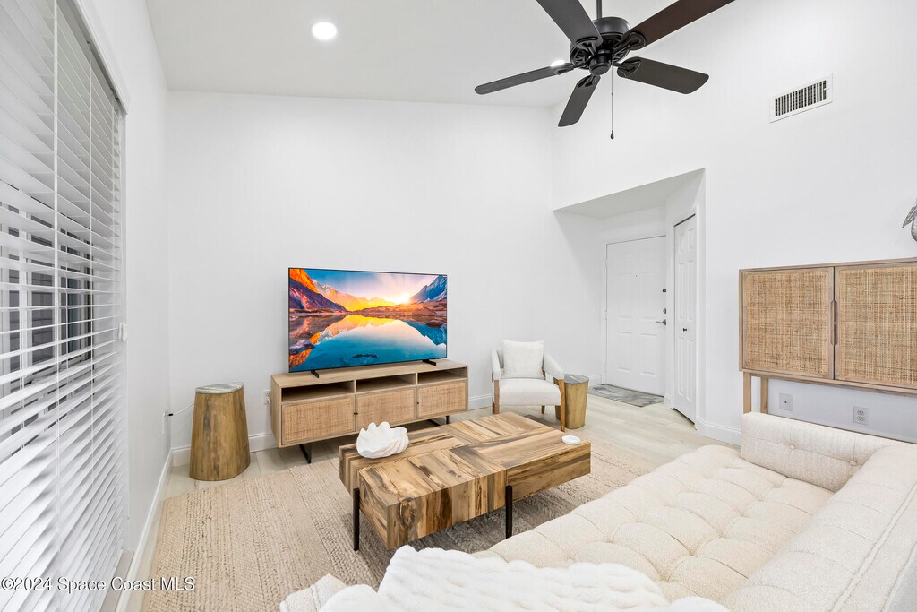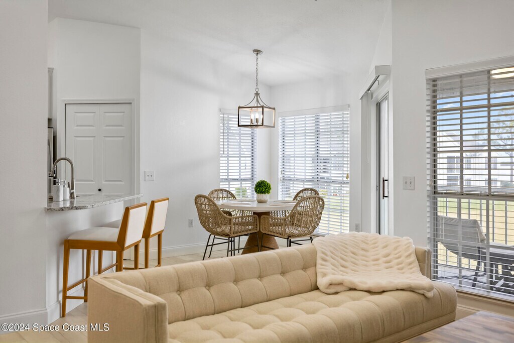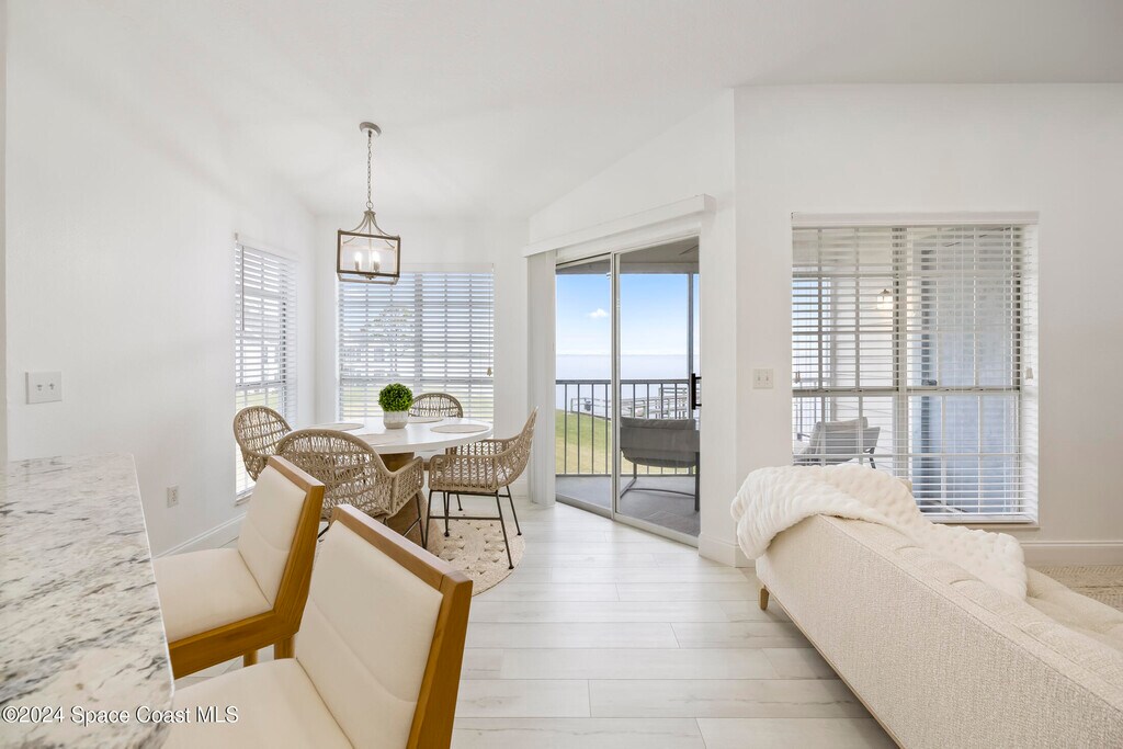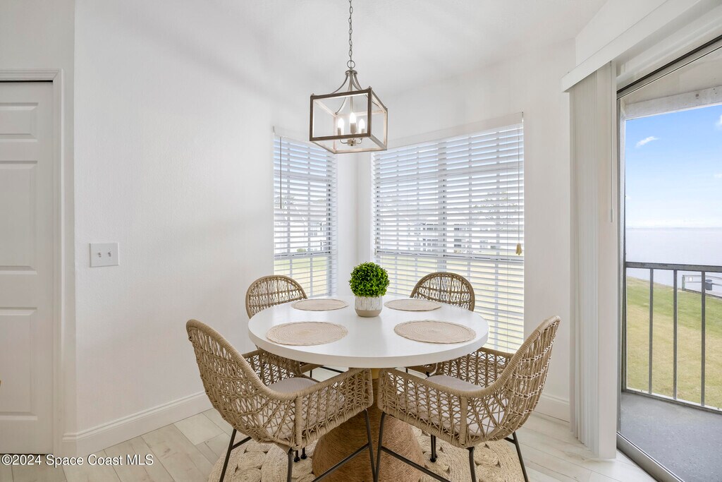 Imagine relaxing while enjoying the peaceful view and calming breeze from the Indian River along with the occasional excitement of witnessing the Rocket Launches from your very own balcony! This stunning turn-key waterfront condo was beautifully updated in 2022. Upon entering the natural light filled home with the expansive view of the intercoastal waterway will captivate you. The vaulted ceilings creates a sense of spaciousness and you will certainly enjoy being on the top floor with no neighbors above you! Waster,Trash,Cable & Internet included!