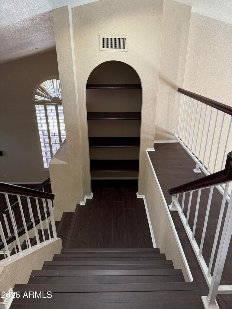 Must see this beautiful home located in the Arrowhead Ranch Community,this home has it all. Vaulted ceilings,new wood stair case with NO CARPET!! This home has the primary suite downstairs with a large bathroom with a separate tub & shower with dual vanities. The 2 bedrooms upstairs are very good size and there is a small loft area that could be used as an office. Outside the backyard will not disappoint with luscious synthetic grass & a nice pool!! The lot is a corner lot with an RV gate and has a 3 car garage. This home will not last long!! There is a 2% admin fee due on top of the rent each month.