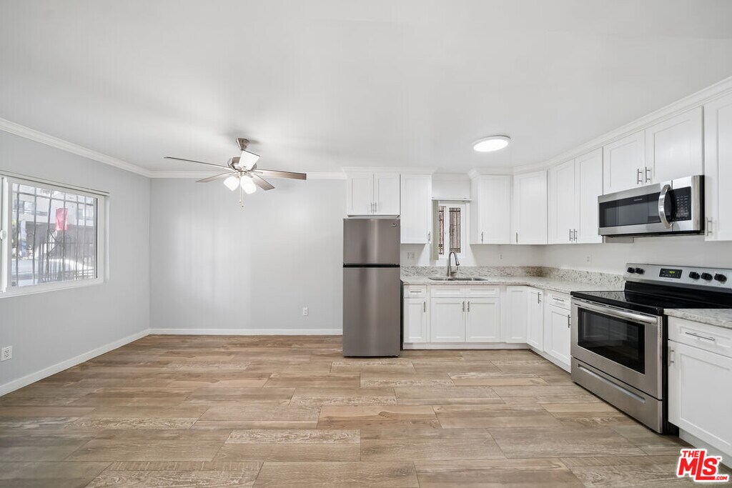 Beautifully upgraded 1-bedroom residence offering a spacious and open layout in the desirable Hollywood area. This large unit features recessed lighting, an updated kitchen with stainless steel appliances, and abundant cabinetry. The expansive living room opens to a private balcony, creating a great indoor-outdoor flow. The bathroom has been fully renovated with a contemporary walk-in shower and modern tilework. The bedroom offers ample space, mirrored closets, and great natural light. The property includes controlled access, on-site laundry, a pool, an on-site manager, and one garage parking space. Water, gas, and trash are included. Pets allowed with approval. Located near Runyon Canyon, Target, Trader Joe's, Hollywood & Highland, and countless dining and entertainment options, with easy access to West Hollywood and Hancock Park. Square footage is approximate and not verified. MLS# 26663913