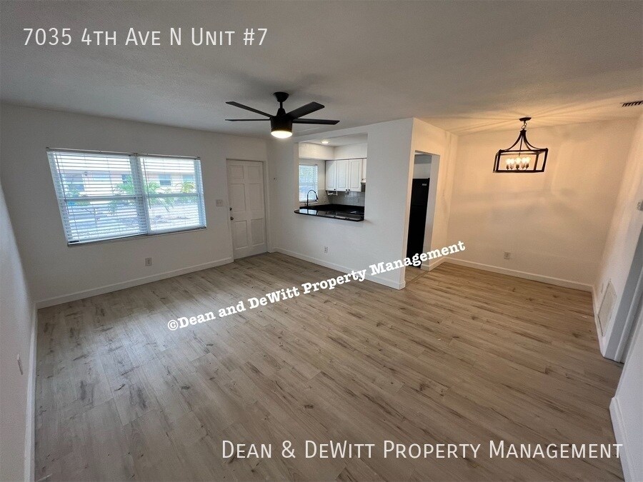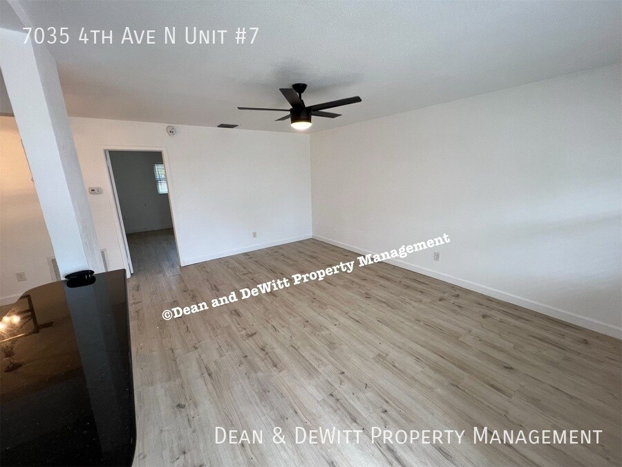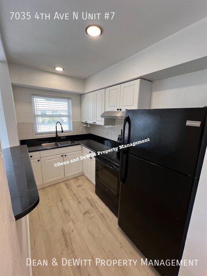 Available now for move in within 30 days 12 month lease minimum One bedroom, one bathroom This property offers a great location to experience the City of St. Petersburg and surrounding area. It is close to shopping, restaurants, bus line and Central Avenue for easy access to downtown St. Pete. This ground floor unit is newly remodeled with white cabinets, black granite counter tops and black appliances. There is vinyl plank flooring throughout. The complex has a center courtyard and offers 2 off street parking spaces. Flat rate fee of $75/month for Water/Sewer/Trash One adult pet under 35 lbs (no aggressive breeds) with pet screening fee of $25, minimum $300 additional deposit for dog and $150 for cat, non-refundable pet fee $300 for dog and $150 for cat, $25/mo per dog and $15/mo per cat. Applicants with dogs are required to provide a photo, animal license, current shot records and have renter's insurance with pet liability. $95 non-refundable application fee for each adult covers credit and background check. $100 administrative fee will be charged upon approval. The unit will not be reserved for applicant until administrative fee is received by management. Once paid, management will process tenant, create lease, send move in instructions, etc. Security deposit due upon approval; Full first month's rent (regardless of move in date) due prior to move in Basic approval requirements include a gross monthly income of three times the rent, a clean background, and fair to good credit No smoking is permitted on premises Please drive by and schedule a showing at