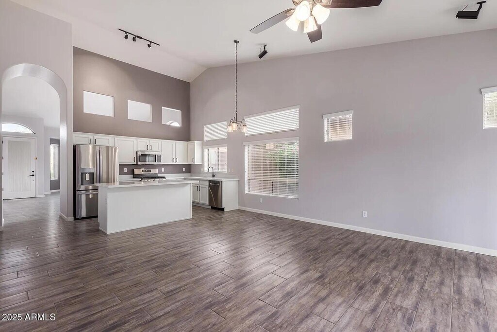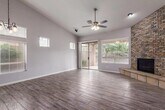 Welcome to this stunning 3-bedroom,2-bathroom home in the highly sought-after master-planned community of Las Sendas. The bright eat-in kitchen features quartz countertops,a breakfast bar,stainless steel appliances,and elegant white cabinetry,all overlooking the cozy family room with a fireplace. Enjoy stylish wood plank tile throughout,with brand-new carpet in the bedrooms. The spacious primary suite offers dual sinks,a walk-in shower,a large soaking tub,and a generous walk-in closet. No cats,no smoking tenants. Available now!