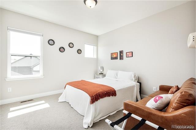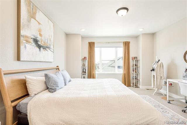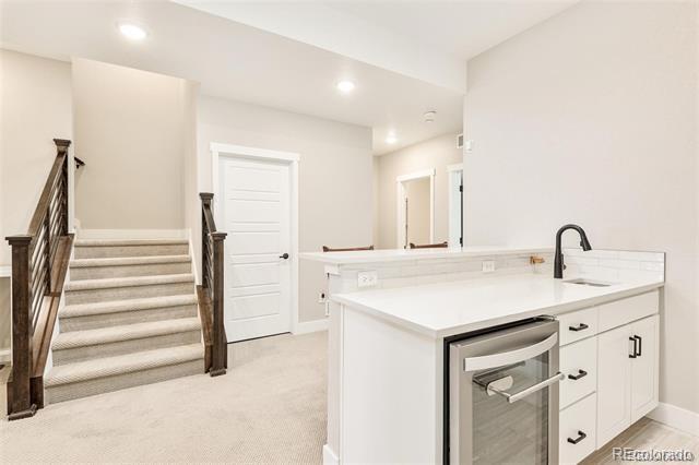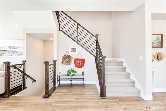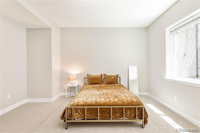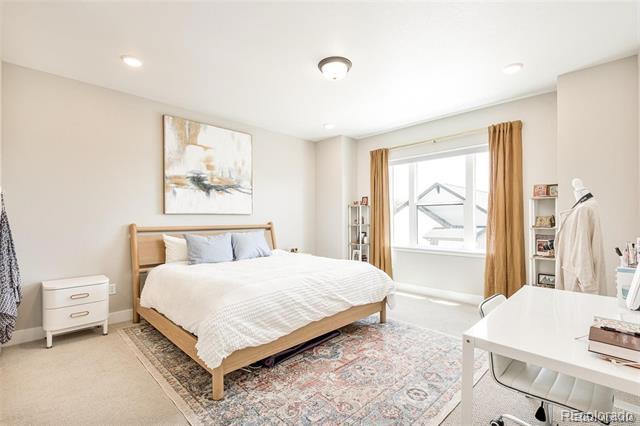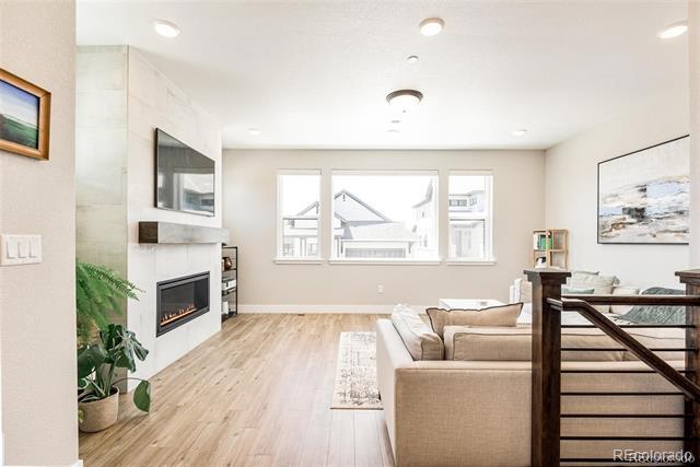 White paint, grey trim and clean lines combine with an elevated front deck and iron fencing in this gorgeous 3br/4ba home for lease within gated Castle Pines Village. Three full levels of stunning on-trend finishes offer high-end quartz, black appliances and fixtures, luxury vinyl flooring, and rich wood accents offer luxury living in a sought-after location. The main floor’s smart layout optimizes mountain views and includes a spacious living room with a tiled gas fireplace and a contemporary wood beam mantle. The dining area flows perfectly into the oversized kitchen. White wood cabinetry, stylish quartz, and contrasting gas stovetop, built-in ovens, fridge, and dishwasher are eye-catching and allow multiple cooks to enjoy the kitchen simultaneously. The large, quartz-topped island provides extra bar seating, and the under-mounted black sink is stylish. Nearby, the mud room has plenty of storage and conveniently acts as a pass-through to the 2-car garage. A half bathroom and decorating niches add to the functionality and style of this floor. Upstairs, a spacious master suite includes dual vanities separated by an incredible tiled shower room. The wrap-around walk-in closet has plenty of space. A flexible loft area, an additional bedroom, and a full bath round out the upper level. The finished basement includes a spacious family room with a gorgeous wet bar, a bedroom and a full bathroom. Minutes to I-25 this 2021-built home is not only stunning but offers convenient commutes and easy access to hikes, nights on the town, skiing, and everything Colorado has to offer. In-community amenities include a pool, tennis, and more than 12 miles of parks and trails. Dogs ok. Townhouse MLS# 4982196