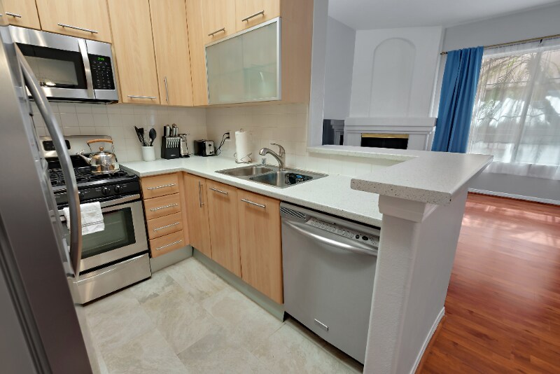 Property Id: 2177465 Welcome to your cozy, modern retreat in the heart of the desirable Westchester neighborhood in Los Angeles! This fully furnished one-bedroom, one-bathroom condo offers the perfect blend of comfort and convenience for your LA stay, whether for business or leisure. The Space Step into an airy, bright living area featuring high ceilings, rich wood flooring, and a warm, inviting fireplace. The space is thoughtfully designed with comfort and aesthetics in mind. • Modern Kitchen: A streamlined kitchen with stainless steel appliances. • Bedroom & Bath: The nice-sized bedroom offers ample closet space, and the full bathroom is easily accessible from the main hallway for guest convenience. • Amenities: Enjoy the convenience of an in-unit washer and dryer, central A/C, and access to an on-site community gym. • Parking & Security: The unit includes two assigned off street parking spaces, for peace of mind. The Location Centrally located in a highly walkable neighborhood, you're just moments from everything LA has to offer: • Walkable Conveniences: Easily walk to grocery stores, various restaurants, and local shopping centers. • Sports & Entertainment: Quick access to the new arenas in Inglewood, including SoFi Stadium and the Kia Forum, for games and concerts. Outdoor recreational activities nearby include several parks, hiking, dog parks, and golf. • Beaches & Nature: A short drive will get you to the beach (Dockweiler State Beach is only about 12 minutes away, Manhattan or Santa Monica beach are a short drive) or beautiful natural areas like the Ballona Creek Trail and various local parks. • Accessibility: Minutes from LAX and the 405 freeway, making travel and exploring nearby cities like Marina Del Rey, Culver City, Santa Monica, and Venice a breeze. • Universities: Convenient to Loyola Marymount University (LMU) and Otis College of Art and Design. This sanctuary in the city is the perfect base for your Los Angeles adventure!