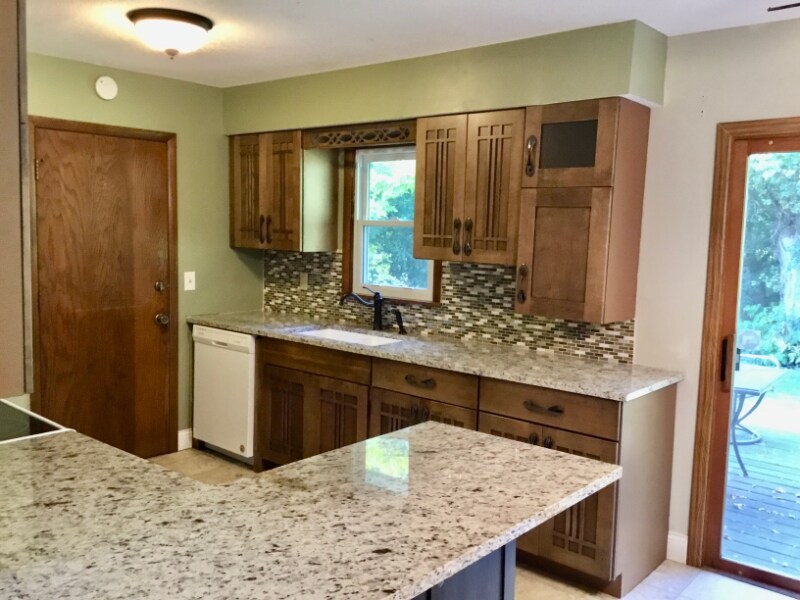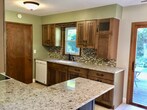 Property Id: 899794 Remodeled 3-4 Bedroom 4-level split with a fenced yard. Knotty Alder kitchen cabinets w/granite counter tops, dining area w/sliding glass doors to deck, hardwood floors , updated bathrooms, family room w/wood burning stove, 2 car garage...backs up to park w/tennis courts, Large 4th bedroom could be Game room,