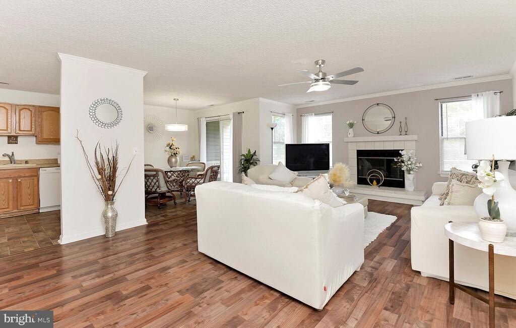 In sought after Eagles Chase, this beautifully maintained 2-bedroom, 2-bathroom condo, featuring an open floor plan designed for effortless living and entertaining. The inviting living room, complete with a cozy wood-burning fireplace, flows seamlessly into the dining area and spacious kitchen. Sliding glass doors lead to a covered patio—perfect for relaxing or enjoying your morning coffee. The kitchen offers ample counter space, a large pantry, and plenty of room for meal prep and casual gatherings. Brand- NEW stainless steel appliances—including a refrigerator, stove, microwave, and dishwasher, kitchen sink—will be installed for modern convenience. A long hallway separates the living areas from the bedrooms, offering added privacy while discreetly housing the laundry and linen closets. Both bedrooms are generously sized, with updated bathrooms and brand-new ceiling fans with integrated lighting. Additional highlights include a one-car garage with direct access to the building—ideal for rainy or snowy days—and a private driveway parking space. Conveniently located near major highways (Routes 1, 295, 95, and 206), as well as the Hamilton and Princeton Junction train stations, this home combines comfort, style, and unbeatable convenience.