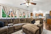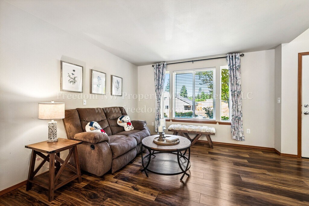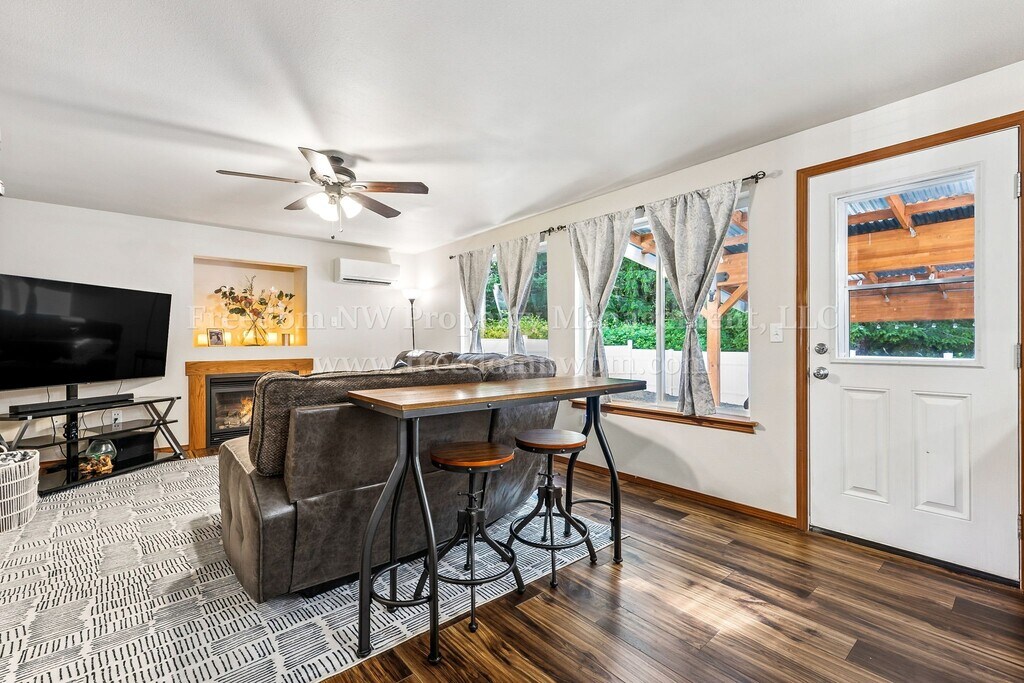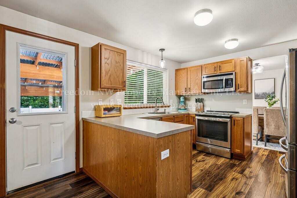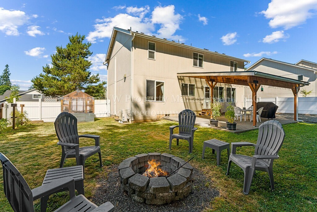 This charming 3 bedroom, 2.5 bathroom home in McCleary offers a spacious open floor plan with both a formal living room and dining room, plus a comfortable family room featuring a propane fireplace and ceiling fans. All three bedrooms also include ceiling fans for added comfort year-round. Located on a cul-de-sac and backing up to a greenbelt, the home provides privacy and a peaceful setting while still offering easy access to the highway for a quick commute to Olympia or Aberdeen. Outside, you'll find a covered patio and a firepit area perfect for relaxing or entertaining. A greenhouse and storage shed offer extra space for projects, gardening, and storage. The kitchen comes equipped with a refrigerator, range, microwave, and dishwasher. A washer and dryer are included as-is and are located in the garage. Parking is plentiful with a two-car garage and additional space in the driveway and on street. Pets are negotiable, and smoking is not allowed.