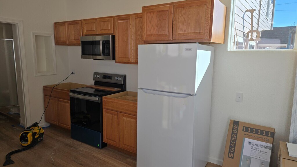 This unit was recently remodeled, everything is new including walls, insulation, windows, lighting, electrical, flooring, cabinets, sink, range, microwave, refrigerator, water heater and mini-split heating & air-conditioning system.This is a spacious studio apartment with laminate flooring, a kitchenette, lots of closet space and large bay style windows looking out into a spacious yard fenced and surrounded by beautiful landscaping. This unit is large enough for your bed and some furniture with space to stretch your wings whether you're inside the home or sitting on the front deck gazing into large well-groomed common yard shared with the neighboring 1 bedroom apartment. Both units have side street gated access giving both of these apartments a very private and peaceful atmosphere. Rent for this cozy studio apartment includes water, sewerage, garbage, pest control, lawncare and curbside parking for your vehicle. This is a beautifully matured property located only blocks away f...