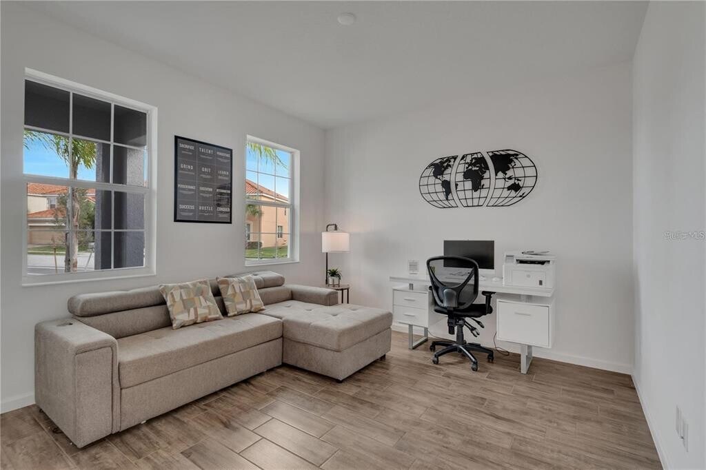 Welcome to this spacious and inviting 4-bedroom,2-story corner lot home. As you enter,you'll be greeted by a private office,perfect for working from home or as a guest room. The main floor is further enhanced by a stunning master suite,complete with double vanity sinks,an oversized walk-in closet,and tray ceilings,offering the ultimate in comfort and style. The kitchen is a chef's dream,equipped with stainless steel appliances and ample counter space,perfect for preparing meals and entertaining guests. The open layout of the main floor seamlessly integrates the living,dining,and kitchen areas,creating a warm and inviting atmosphere. As you head upstairs,you'll find 3 additional bedrooms and a cozy family room,providing plenty of space. This home is perfect if you want comfort,style,and functionality in one complete package. Schedule your private tour today and discover the many features that make this home the perfect place for you to call home. Please note refrigerator displayed in the photos will be different. Home will be leased unfurnished. MLS# O6338117