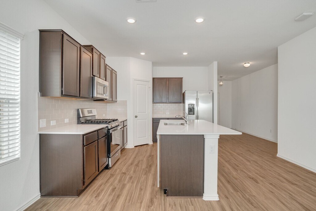 Energy efficient smart home in a master planned community. 4 bedrooms. Chef's kitchen silestone counter, stainless appliances, tile backsplash, vinyl plank floors. Master bedroom with oversize stand up shower, tub and walk-in closet. New Frige, washer and dryer included. Enjoy Resort-style community pool, catch/release fishing pond, trails, activities planned by on-site Lifestyle Director. Mins. to 183A, Metro/Light Rail, Leander New Downtown, ACC, Shopping. Leander Schools.