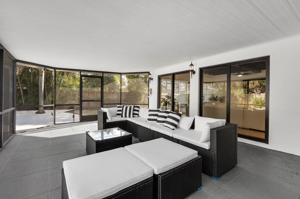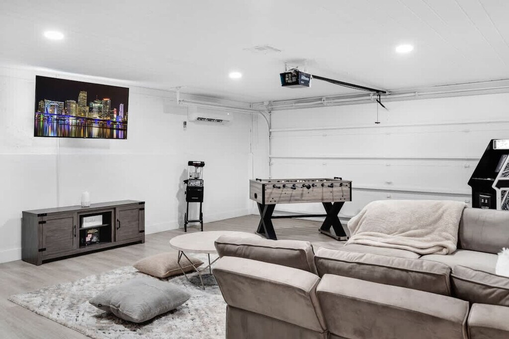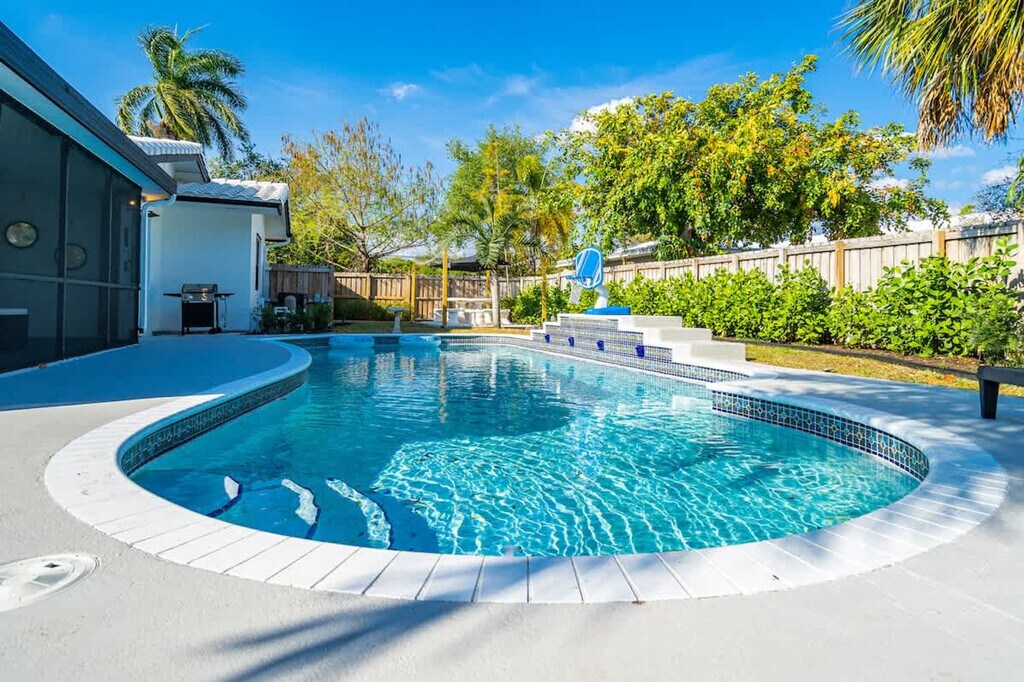 Feel at home in this 2,500ft² house, located close to the beach in Pompano Beach. This 4-bedroom home offers a heated pool, arcade games, and pool tables. Recently remodeled, this home features an on-site washer and dryer, a fully fenced backyard, and a coffee maker. Each room includes a smart TV, and fast Wi-Fi (+800mbps) is available. Enjoy outdoor dining at sunset. Pool heating is available for an additional $50 per day, with a 48-hour advance notice. Pompano Beach is a lively coastal city in South Florida, known for its sandy beaches, clear waters, and vibrant pier. With great dining, parks, and top diving spots, it’s perfect for relaxation and adventure alike. Restaurants, bars, and food are within 1 to 2 miles, and Fort Lauderdale-Hollywood International Airport is 16 miles away. Ride-sharing services like Uber or taxis are highly recommended for getting around. This is a pet-friendly property; please indicate the number of pets you are bringing before booking. Please clean up after using the BBQ, or an extra $50 cleaning fee may apply. Smoking is not allowed inside the house. The landscaper will enter the property for scheduled lawn maintenance every 15 days, and the pool technician will conduct pool maintenance twice a week. Services are automatic and non-intrusive. Big driveway (4-5 vehicles) and Visitors OK [SI]
