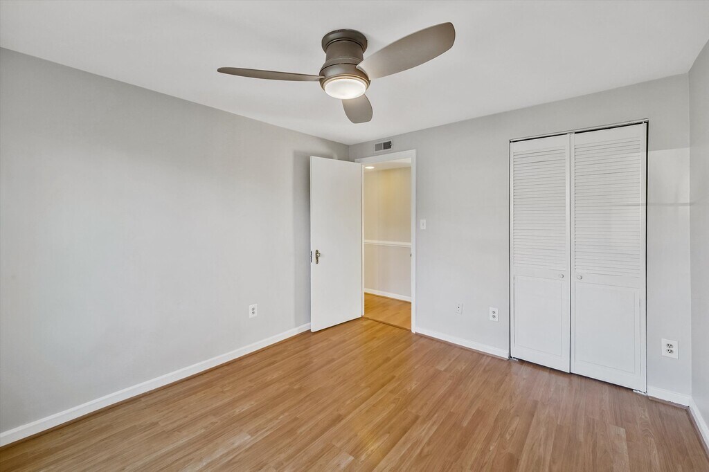Freshly painted 2-bedroom, 1 bath condo in Park Glen. Overlooks courtyard and adjacent to W&OD and Four Mile Trail. Spacious living room with bay window opens to dining area and bright galley kitchen with upgraded counter tops and stainless-steel appliances. Pergo wood floors throughout. 2 large bedrooms with plenty of natural light and stylish, updated full bath. Shared laundry in well-lit basement. Large individual storage space available at no extra cost. Amenities include an outdoor pool, 1 assigned parking space, bike storage and biking/walking trails. Water and trash service included in rent. Pets considered on case-by-case basis. Refundable pet deposit required. Property is professionally managed. No smoking. Move in fee, $150. Easy access to Four Mile Run Dr., Columbia Pike and 395. Close to Seven Corners with multiple shopping and dining options, the Pentagon and Shirlington. Requirements include a credit score of 650+ and gross monthly income 3 times the rent amount. Apply on the ROI Property Management website.