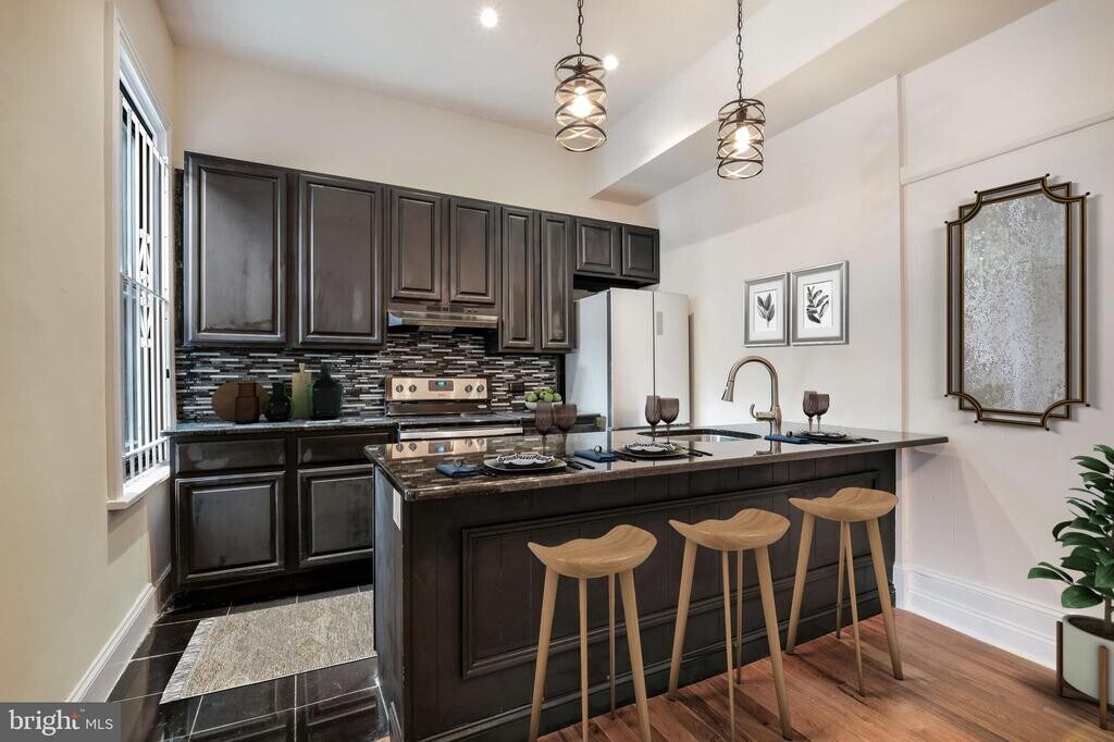Live DIRECTLY ON WASHINGTON SQUARE in a stunning brownstone building that offers charm, character, and one of the most desirable locations in the city. This spacious bi-level one-bedroom residence features beautiful HARDWOOD FLOORS throughout and an open concept layout that combines comfort with classic architectural details. The living and dining area boasts impressive high ceilings that enhance the sense of space, along with BUILT-INS that add both functionality and timeless style. The kitchen is generously sized and features STAINLESS STEEL APPLIANCES along with a convenient BREAKFAST BAR, making it ideal for both casual dining and easy entertaining. The apartment also includes an elegant, all-marble bathroom. Residents of the building enjoy access to convenient amenities, including a common ONSITE LAUNDRY and a SHARED OUTDOOR DECK—an ideal spot to relax and enjoy fresh air right at home. Situated just minutes from Jefferson and Pennsylvania Hospitals, this home is perfectly located for professionals seeking both convenience and a vibrant neighborhood lifestyle. Daily essentials are easily accessible with Whole Foods Market and Tula’s Daily nearby, while some of the city’s best dining, cafés, and entertainment venues are all within walking distance. This well-proportioned residence offers a rare opportunity to live in one of the only brownstone apartment buildings on Washington Square, combining historic charm with modern conveniences in one of the most sought-after locations in the city.