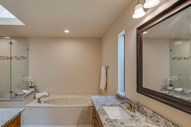 LOVELY 2-STORY HOME WITH BEAUTIFUL CURB APPEAL. This incredible split-bedroom floorplan has natural light. Nest thermostats & neutral colors throughout. Prepare meals in the kitchen offering stainless steel appliances, a gas range & a spacious breakfast room. Spend time with family in the large living room boasting a floor-to-ceiling brick fireplace. Take comfort in the massive primary suite featuring a tray ceiling, huge walk-in closet, dual granite vanities, a jetted tub & beautiful frameless shower. Unwind in the evenings on the open patio overlooking the lush green grass & large mature trees.