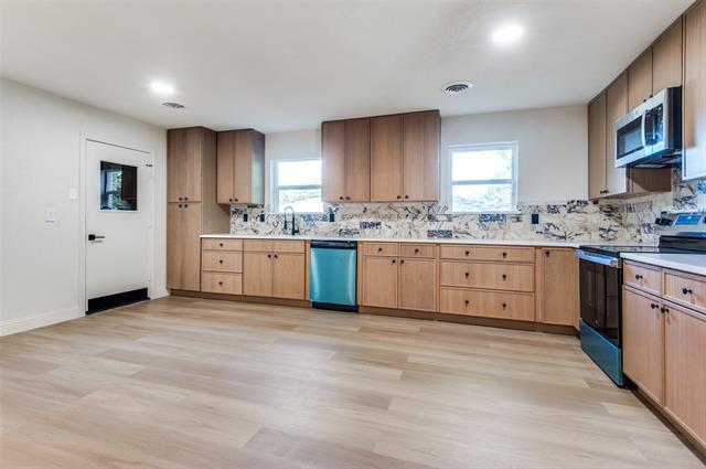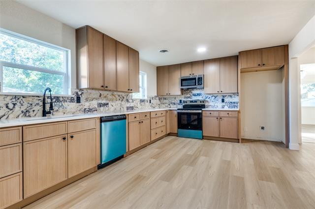 Welcome to this beautifully remodeled 3 bedroom, 2 bathroom home in Grand Prairie, TX. This house features an open floorplan with 2 spacious living areas, perfect for entertaining guests or relaxing with family. The decorative lighting and LVP flooring in the living areas add a touch of elegance to the space. The neutral colors throughout create a warm and inviting atmosphere. You'll love the two fireplaces, perfect for cozy evenings at home. The gourmet kitchen is a chef's dream, complete with stainless steel appliances and quartz countertops. Don't miss out on the opportunity to make this stunning house your new home!
