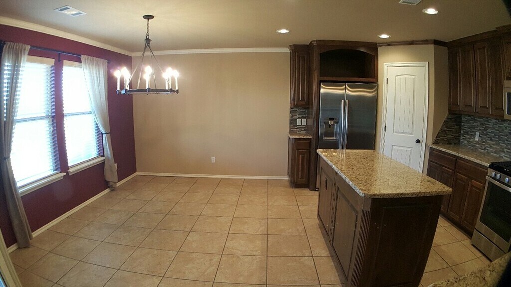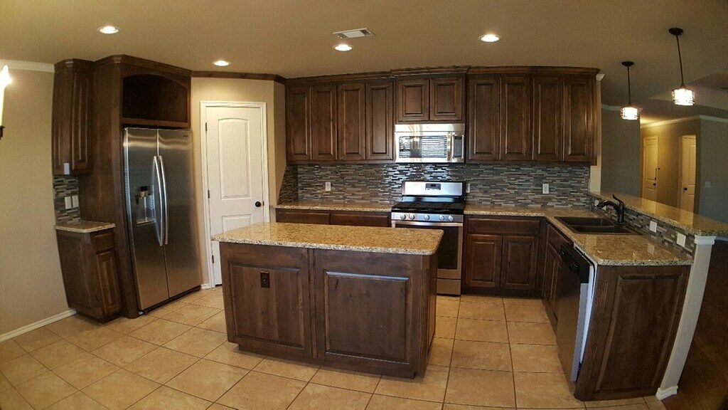 Spacious dream kitchen in this wonderful new home with gorgeous alder cabinetry, center island, and walk-in pantry. Granite tops, gas cooktop, large dining and breakfast bar...opens to family room with corner fireplace and real oak wood floors! Master suite has large walk-in closet and luxurious bathroom with jetted tub, double vanities, and granite counters. Storm shelter in garage. Nice covered patio! Located in the heart of OKC within minutes of everywhere you want to be! Neighborhood park and pool!