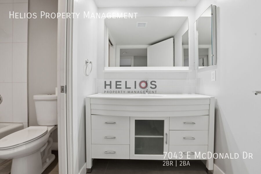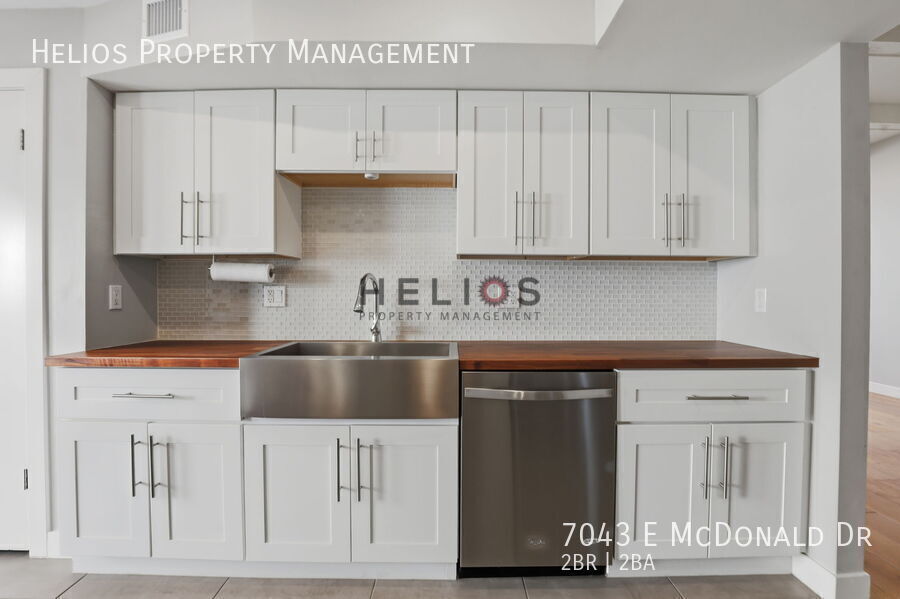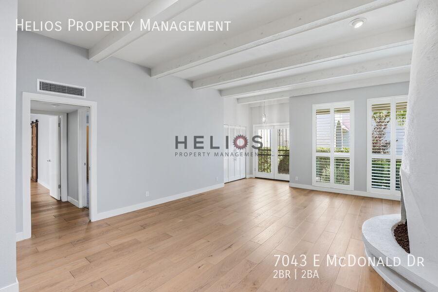Experience the epitome of upscale living at 7043 E McDonald Dr, a meticulously crafted residence situated in esteemed Paradise Valley. This exclusive home seamlessly blends modern elegance with the natural beauty that characterizes the Arizona lifestyle. Spanning 1,878 square feet, this two-bedroom, two-bathroom oasis offers an inviting haven beckoning you to retreat to your own sanctuary. Inside, you'll find a gourmet chef's kitchen adorned with top-tier appliances, designed for culinary enthusiasts and those who appreciate sophisticated living. The open-concept living and dining areas exude an air of vintage elegance, perfect for hosting gatherings or simply enjoying daily life in style. Rest and rejuvenate in the opulent bedrooms, including a master suite that epitomizes luxury. The spa-inspired master bathroom features a lavish soaking tub and an walk-in shower, providing the ultimate retreat within your own home. 7043 E McDonald Dr offers the quintessential blend of elegance, comfort, and convenience. Whether you seek a serene escape or a home designed for upscale entertaining, this rental property encapsulates the essence of elevated living. Located in the heart of Paradise Valley, you can enjoy the tranquility of the desert while remaining in close proximity to Scottsdale's upscale dining, high-end boutiques, and cultural attractions. Don't miss the opportunity to reside in one of Paradise Valley's exclusive neighborhoods. $3195.00 per month rent $3195.00 Refundable Security Deposit, $200 Admin Fee, $75 Application Fee. $300 non-refundable pet fee and $50 monthly pet rent per pet (upon owner approval). $29 monthly Energy and Preventative Maintenance Program fee which includes installation of new AC filters every 60-days. Facts and figures are provided to the best of Helios Property Management's ability but are not guaranteed to be accurate. You are encouraged to verify any fact or figure materially relevant to you and your decision to rent this home. Equal housing opportunity.