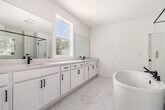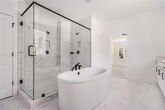 READY NOW!!! Never lived in this stunning Hendricks floorplan,2 car garage,5 bedrooms,4 bathrooms. Guest Bedroom with full bath on main,separate open dining room,kitchen with double ovens,quartz counters and stainless steel appliances,deep island,access to over sized covered patio with stunning triple sliders and views to great room. White painted cabinets to ceiling. Soaring two story ceilings in great room with massive wall of windows,fireplace in great room with beautiful ceiling height white stone surround flanked by niches suitable for future bookcases. Private backyard on wooded lot,oversized sideyard,located in cul-de-sac. Primary bathroom features beautiful oversized frameless shower with two shower heads,bench and soaking tub. Laundry room,three secondary bedrooms and amazing views through two story windows complete the second floor. Amenities will include pickleball courts,pool and cabana.