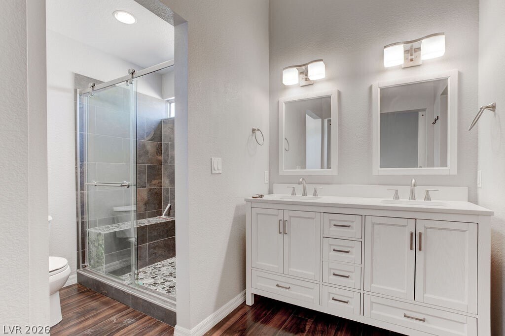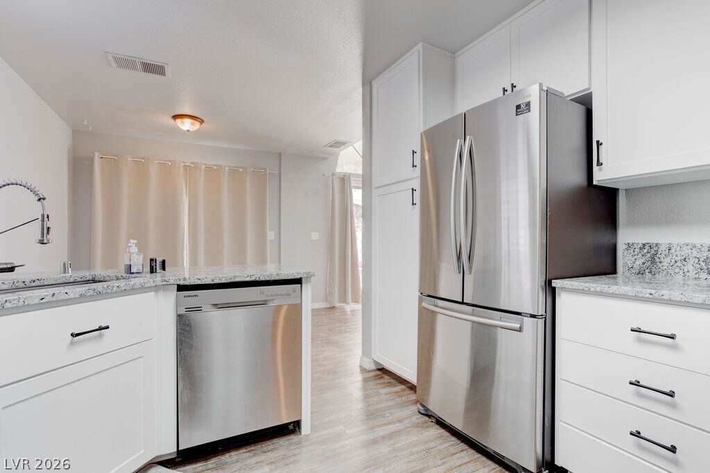 Welcome to your dream home with NO HOA in the heart of Las Vegas! This beautifully remodeled three-bedroom retreat offers the perfect blend of style and flexibility. Featuring two luxurious primary suites, this rare layout provides exceptional comfort and privacy—ideal for multi-generational living. With three full bathrooms and a spacious two-car garage, every detail is designed for modern convenience. The gourmet kitchen is a true showstopper, complete with refaced cabinetry, sleek modern hardware—perfect for entertaining or everyday living. Bright, open living areas create a warm and welcoming atmosphere throughout the home. Step outside to an expansive backyard oasis with mature landscaping and low-maintenance artificial turf. Tucked away on a quiet cul-de-sac, this property offers peace and privacy while remaining just minutes from the 215 freeway, the iconic Las Vegas Strip, and Harry Reid International Airport. Enjoy comfort, convenience, and freedom—without HOA restrictions!