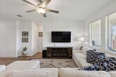 Charming 2021 build home in the Master Planned Community of Bridgewater, in Princeton. Upon entering the home your eyes are drawn to the wall of windows, with gorgeous natural light and tree lined views with no neighbor behind. It’s open concept floor plan with beautiful modern finishes reminds you that this home is almost new. The kitchen, perfect for cooking and entertaining, includes a large island, white quartz counter tops, designer cabinets, a walk-in pantry, stainless steel appliances and plentiful countertop space. The luxury vinyl floors with a light wood like appearance flow through the living spaces. The split floor plan offers 2 bedrooms, a full bath with tub, laundry room and linen closets on one end and the primary suite overlooking the backyard and covered patio on the other. The primary suite includes a large walk-in closet, dual sinks, quartz countertops and a walk-in shower. Community amenities include a pool, fitness center, jogging trail, volleyball court and more!