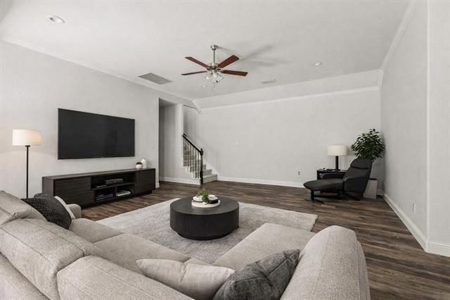 Welcome home to this beautifully designed 4-bedroom, 3-bath townhome located in the award-winning Harvest master-planned community within top-rated Argyle ISD. Fridge- Washer -Dryer to STAY! This light and bright open-concept floor plan offers the perfect blend of comfort, functionality, and modern style ideal for today’s lifestyle. The gourmet kitchen serves as the heart of the home, featuring a large center island, stainless steel appliances, a built-in gas cooktop, granite countertops, and ample cabinetry for storage. The kitchen opens to the spacious dining and living areas, creating the perfect space for entertaining family and friends. The private primary suite offers a relaxing retreat with a spa-inspired ensuite bathroom and a custom walk-in closet complete with built-ins. A secondary bedroom and full bath are conveniently located downstairs, while the upstairs game room and two additional bedrooms provide flexible living options for guests, family, or a home office. Enjoy outdoor living with a beautifully landscaped yard perfect for dining al fresco or weekend gatherings. Residents of Harvest enjoy resort-style amenities including multiple community pools, fitness center, parks, playgrounds, scenic walking trails, event spaces, and a neighborhood coffee shop. HOA covers front yard maintenance, cable, and internet, providing easy living and peace of mind. Conveniently located near shopping, dining, and major highways, this home truly has it all, style, location, and lifestyle!
