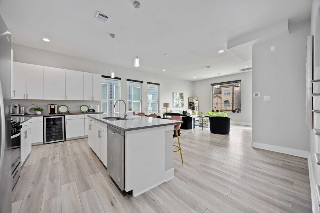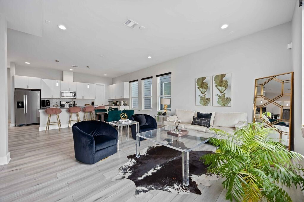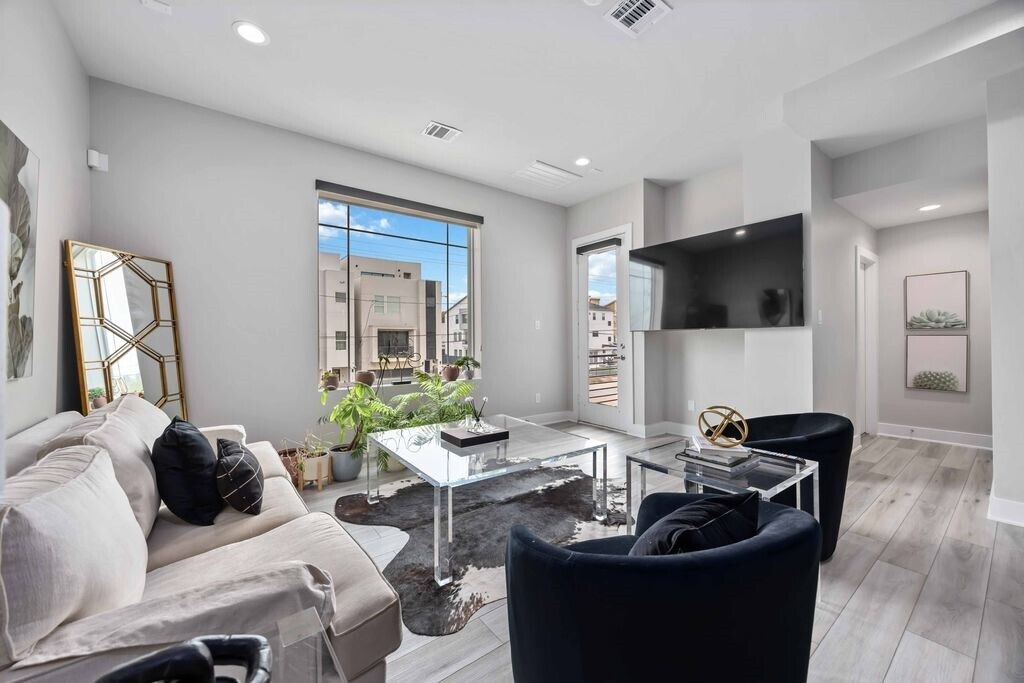 Experience the sleek feel of high rise living in this stunning three-story modern home. Fully furnished,this home is located just minutes from Downtown Houston! This stunning residence offers high-rise style living with innovative open floor plan,soaring ceilings,spacious living & dining on the 2nd floor,and private bedrooms on 1st & 3rd floors. Beautiful kitchen with granite countertops,large island w/cooktop,breakfast bar,soft-close cabinets & walk-in pantry. Generous bedrooms,baths & closets,double-pane windows,balcony,and gas fireplace connection. Contemporary stucco & wood exterior. Close to Minute Maid Park,EaDo,Discovery Green,Toyota Center,Shell Energy Stadium & quick access to I-10. Move-in ready luxury near it all! Schedule your private showing today. MLS# 49802472