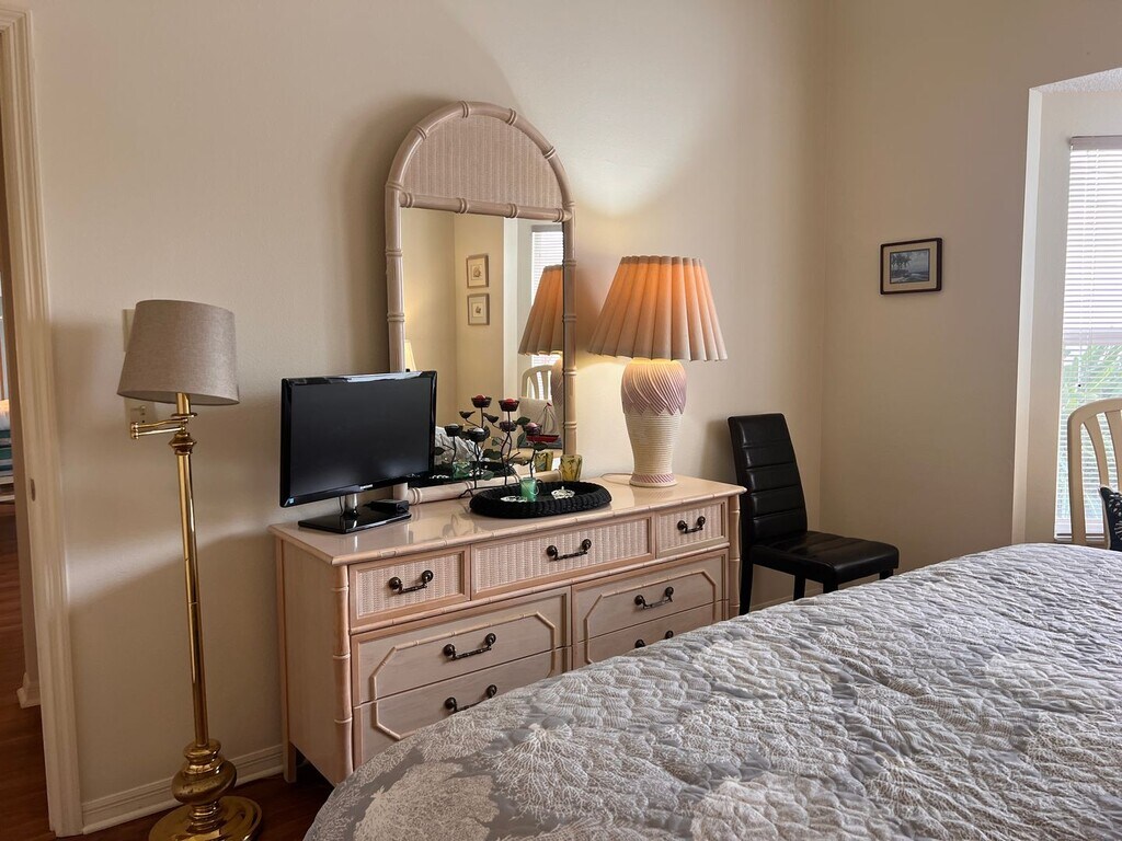 Available February - April. This gated smaller community located within The Plantation is a free standing larger villa with 2 Bedrooms, 2 baths and a 2 car garage. Large open concept living room/dining room with additional den/tv area. Eat-in kitchen has Whirlpool appliances and a small island for additional cooking space. King beds in both bedrooms. Beautiful hardwood floors throughout. Lake view from the screened in lanai that runs the length of the villa with outdoor access from both sides. Community pool and clubhouse. Close to Wellen Park with fine dining and shops and the Cool Today Park which hosts Spring Training for the Atlanta Braves and more! A 15 minute drive brings you into historic downtown Venice to enjoy, strolling the streets and enjoying casual and fine dining establishments, wonderful mom and Pop stores and, of course, Venice Beach! All rental rates listed are base rental rates. Additional charges include state/county sales/tourism tax (currently 13%), reservation deposit (included in total), rental processing fee of $75.00, a cleaning fee at the end of lease (varies by property) and utilities above monthly cap allowances. Basic cable, satellite or streaming service provided (internet included). Homeowners’ association fees, if applicable, vary by association. An initial deposit of 25% is due with signed lease. An additional 25% of total is due 4 months (120 days) prior to the move-in date and the final 50% is due 2 months (60 days) prior to the move-in date. If the move-in date is less than 60 days, all monies will be due with a signed lease agreement.