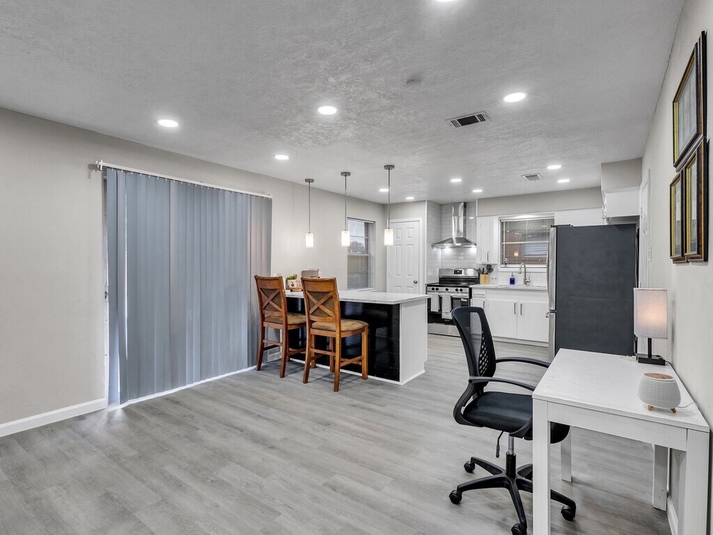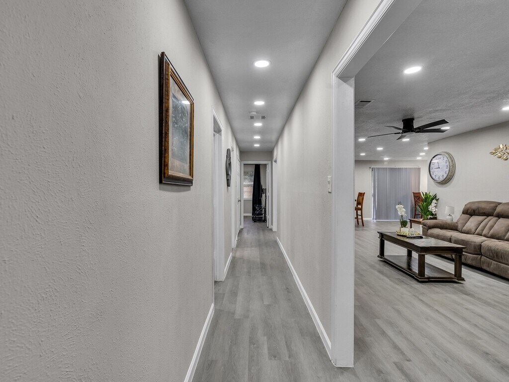 Step into this stunning 3 bedroom,2 full bath home in Central Baytown. Enjoy the airy and well-lit atmosphere,complemented by a covered patio perfect for outdoor gatherings. The double wide driveway leads to a 2 car garage,while a large shade tree enhances the front yard. Inside,find new paint and flooring,along with modern features such as LED lighting and stainless steel appliances. The property also boasts quartz countertops,smart light dimmers,and a smart thermostat. Fully fenced and fully furnished,this home is the epitome of comfort and style. MLS# 45041538