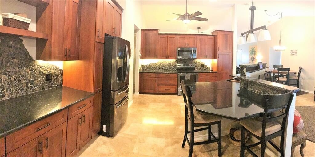 Annual Pool Home Rental – Luxury Living on ½ Acre in Nokomis This spacious 3-bedroom,2-bath pool home has it all—privacy,style,and location. Situated on a quiet cul-de-sac just minutes from the new SMH hospital,Nokomis Beach,Legacy Trail,Venice Island,US-41,I-75,and top schools,the home offers the perfect blend of convenience and retreat. Inside,you’ll find nearly 2,400 sq. ft. of living space with vaulted ceilings,wood-look tile flooring,and an open concept design ideal for entertaining. The chef’s kitchen features cherry cabinetry,granite countertops,black stainless appliances,a copper sink,and custom backsplash,flowing seamlessly into the family and dining areas with French doors opening to the lanai. Step outside to enjoy 1,200 sq. ft. of covered outdoor living. The solar-heated pool boasts a waterfall,bench seating with jets,and an in-pool table. Side patios provide perfect grilling and lounge areas,all surrounded by a private half-acre setting. The luxury primary suite includes dual closets and a spa-inspired bath with a custom travertine walk-in shower,dual showerheads,floating marble vanity,and designer vessel sink. Two additional oversized bedrooms with double closets share the second bath. Additional perks include an oversized 2-car garage,interior laundry,covered pergola carport,and space for RV/boat parking. Minimal deed restrictions provide added flexibility. ?? Highlights: 3BR / 2BA / 2-Car Garage + Covered Carport 2,400 SF Interior + 1,200 SF Lanai Solar-Heated Pool with Waterfall & Seating Gourmet Kitchen & Open Floor Plan Luxury Primary Suite w/ Spa Bath Half-Acre Lot,RV/Boat Parking Quiet Cul-de-Sac Location ?? Rental Terms: Annual Lease Pool care included MLS# A4667244