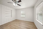 This delightful 2 bedroom home offers the perfect private retreat located on a large lot surrounded by soaring trees. This beautifully updated 875 square foot home offers more functionality than most homes over 1000 sq foot! The intentional and cozy layout welcomes you with all new wood plank flooring for a sense of modern warmth and functionality, ideal for those seeking a peaceful haven. The kitchen has been appointed with new electric stove. And an all new 22 SEER energy efficient mini-spit AC and Heat creates more efficiency than traditional heating and cooling. And did you see that gorgeous new bathroom? This fully updated home leaves no stone unturned for easy, efficient, and maintenance free living. The inviting ambiance of this property makes it a true gem, where every room is bathed in natural light, enhancing the cheerful atmosphere and peace while nestled close to everything the city has to offer. Conveniently located, this home offers easy access to local amenities, ensuring that everything you need is within reach. Park your car under the carport when you return to protect it from Texas weather. This home is a must if you wish to experience the perfect blend of tranquility, accessibility, space, and modern updates.