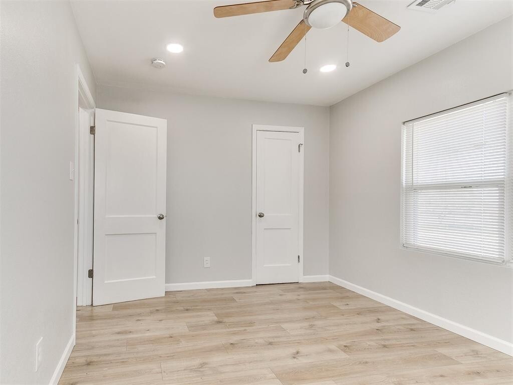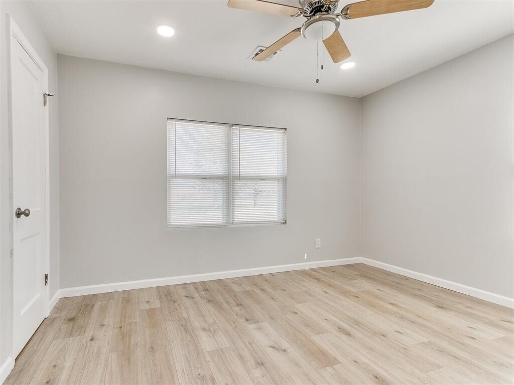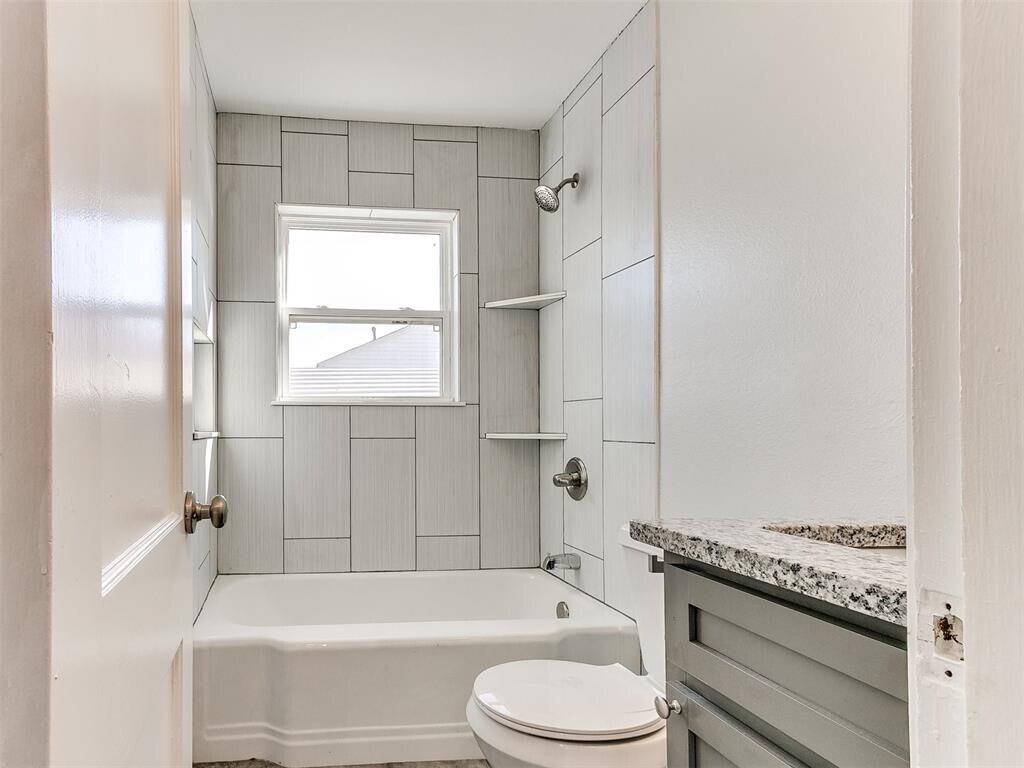 Fully remodeled 1 bed 1 bath duplex in the "Original Mile" of Midwest City. Recently updated windows, roof, HVAC, hot water tank, gutters, sewer line, and plumbing. New tile tub surrounds, tile backsplash, kitchen cabinets, granite countertops, dishwasher, ceiling fans and built in laundry closet. New luxury laminate flooring throughout. Has its own driveway and carport on south side. Open backyard no fencing and is a shared space between both units therefore **No Pets Allowed**. The covered balcony is not included and goes with the unit next door.