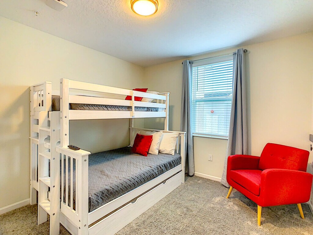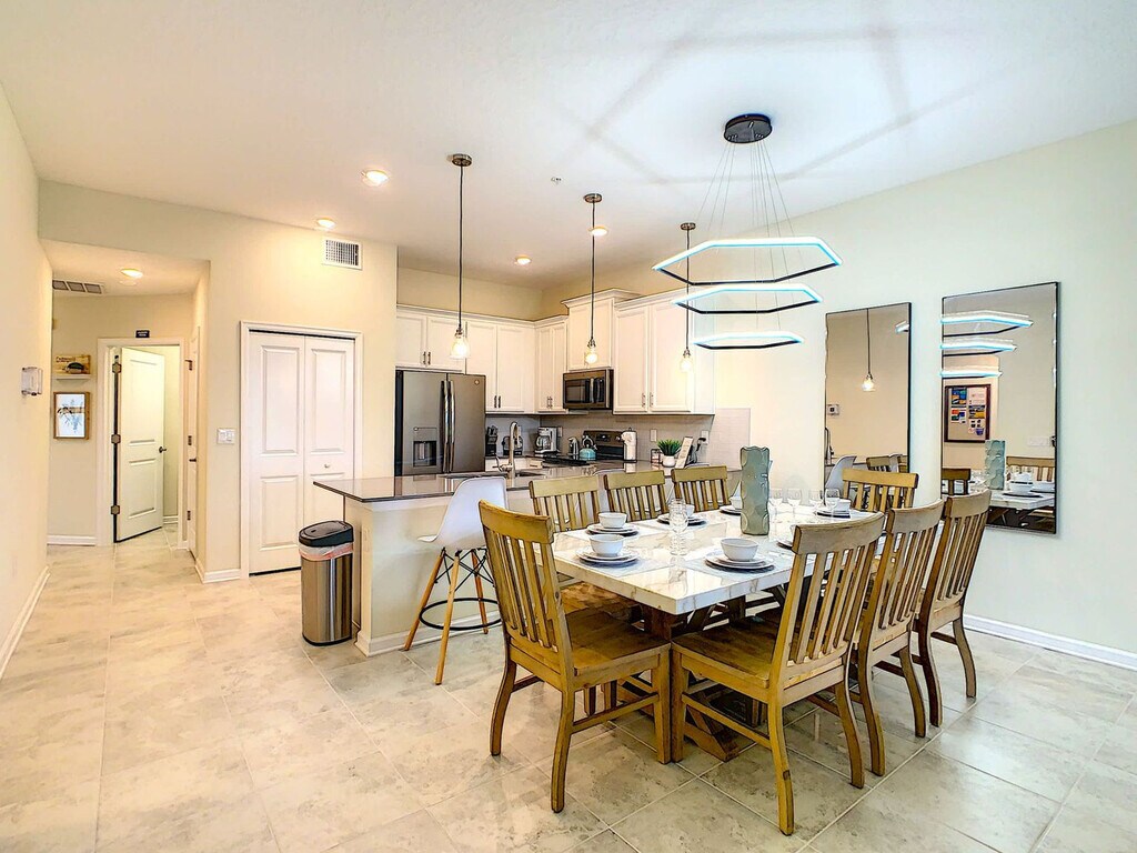 Experience the excitement of the new Epic Universe park this May 22nd by booking your stay in this comfortable apartment just minutes away. Feel at home with unbeatable comfort and enjoy the convenience of a fully equipped kitchen, air conditioning, and a laptop workspace. The apartment features a master bedroom with a king-size bed and a flat-screen smart TV, a Disney-themed second bedroom with a bunk bed, and a social area with a sofa bed and digital smart TV. Enjoy the luxury of three smart digital-cable TVs, a game console, and patio furniture. Enjoy full complimentary access to all the wonderful resort amenities, including a gym, heated swimming pools, a lazy river, a water park, and more. The main clubhouse, Oasis Club, is just a 7-minute drive away, offering a spa center, golf, and a family cinema. A second clubhouse features a pool, water slide, mini-golf, and tiki cabanas. The apartment comes with essentials for the first night, including toiletries and kitchen supplies, and features a fully equipped kitchen, washer/dryer, and high-speed internet. Additional services are available for an extra cost, including pack and play, high chair, early check-in, and late check-out. Free parking is available for guests. Located near major attractions such as Sea World, Universal Studios, and Disney World, this apartment offers easy access to entertainment and shopping. Nearby outlets include Ross Dress for Less and Sephora, while supermarkets like Publix and Target are just a short drive away. Transportation options include Uber and Lyft, and local restaurants and golf courses are within easy reach. Guests must be at least 18 years old to book a reservation. No unregistered guests are allowed, and smoking and pets are not permitted inside. The property is exclusively for vacation use and does not allow filming without prior authorization. Check-in is keyless, with a code provided prior to arrival. A safety protocol is in place to ensure the well-being of guests and personnel. The apartment includes a laptop workspace and high-speed internet, making it ideal for remote work. A laptop computer is not included.