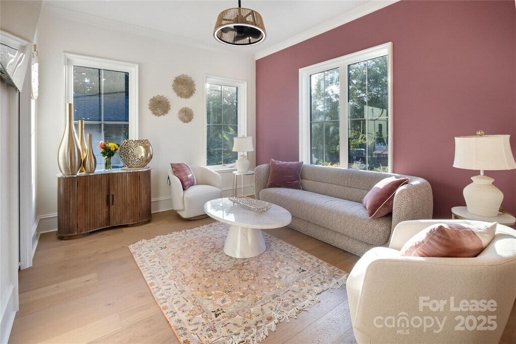 Welcome to this new construction masterpiece in Midtown Charlotte,crafted by Modern Living Group to honor the neighborhood’s historic charm while introducing modern sophistication with respect to the tradition. Just minutes from Uptown,South End,and Elizabeth,this home perfectly blends timeless architecture,premium finishes,and energy efficiency. The exterior showcases architectural landscaping and full property lighting,while the interior features hardwood floors,custom trim,and Visual Comfort lighting for an elegant,light-filled atmosphere. The open layout connects the great room to a designer kitchen with custom cabinetry,Ann Saks marble backsplash and tiles,premium countertops,and professional-grade appliances—a perfect blend of beauty and function. Built for comfort and sustainability,the home includes spray-foam insulation,a sealed crawlspace,and a conditioned attic for maximum energy performance. Bathrooms are spa-inspired with Ann Sacks tile,frameless glass showers . Each bedroom,especially the primary suite,feels spacious,bright,and serene. Modern touches include automatic power shades,built-in robotic vacuum,and high-speed internet,delivering effortless luxury. A fully detached ADU at the rear matches the main home’s quality,featuring its own address,utilities,kitchen,full bath,and central HVAC—ideal for guests or executive rental. Located in one of Charlotte’s most desirable neighborhoods,this home captures Modern Living Development’s mission: to create homes that blend classic character with innovative design. Available furnished with full kitchen requirement. Weekly cleaning,landscaping,and high-speed internet included.