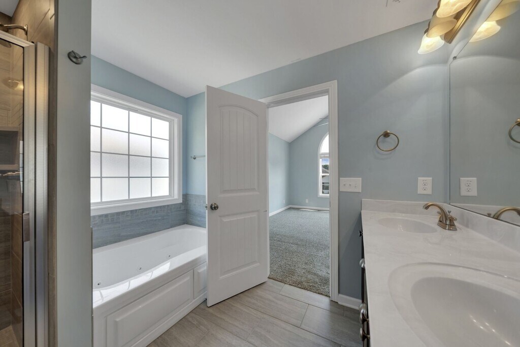 CLOSE TO POST! COMMUNITY FISHING/BASKETBALL/PLAYGROUND! Quick Access to gate 10! No backyard neighbors! Wide open floor plan w/Bonus Rm! Gorgeous Kitchen w/Granite & Huge Bar-top for extra seating, S/S Appliances! formal dining rm, Large living rm w/tall ceilings & gas fireplace, Hardwood, Cultured Marble Tops in all Baths! Master bedroom has tall ceiling, double vanities, separate jetted tub, tile shower, walk in closet. Basement features a large bonus rm, laundry rm w/mud sink, one bdrm, full bth. Covered Back Deck! Underground Utilities, 2 Parks & Sidewalks! Garbage pick up included in lease. Fenced in backyard. Deep 2 car garage! $250 nonrefundable pet fees per pet + $25 monthly. Dogs okay, NO CATS!!