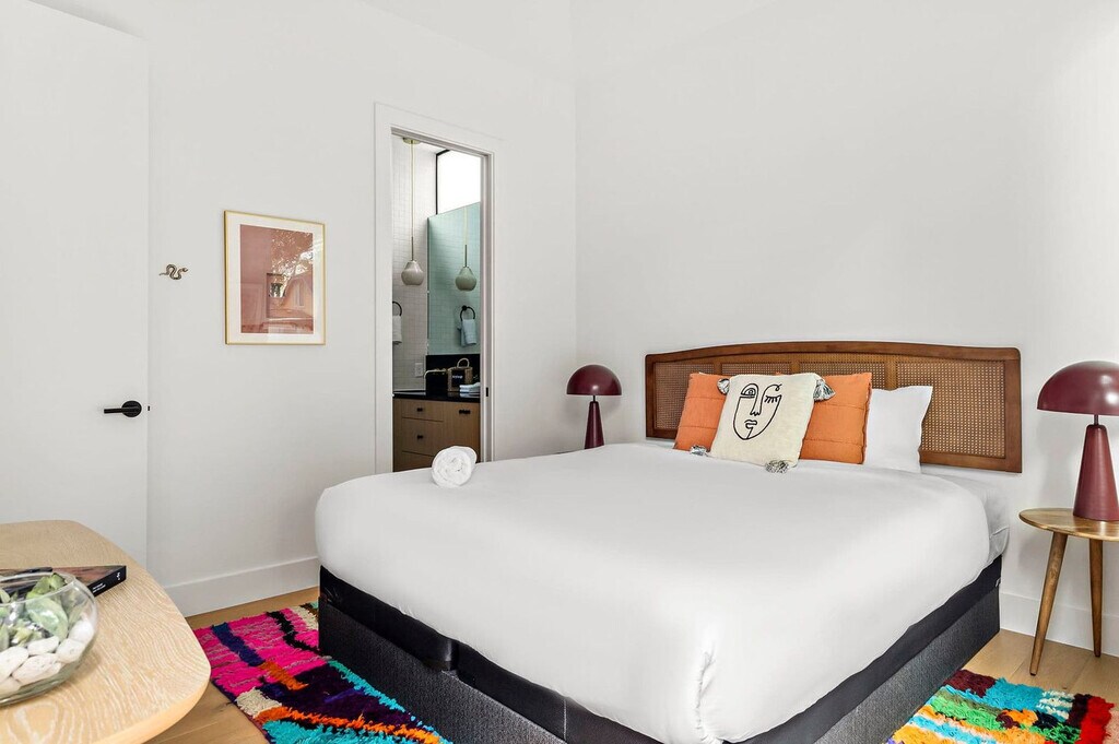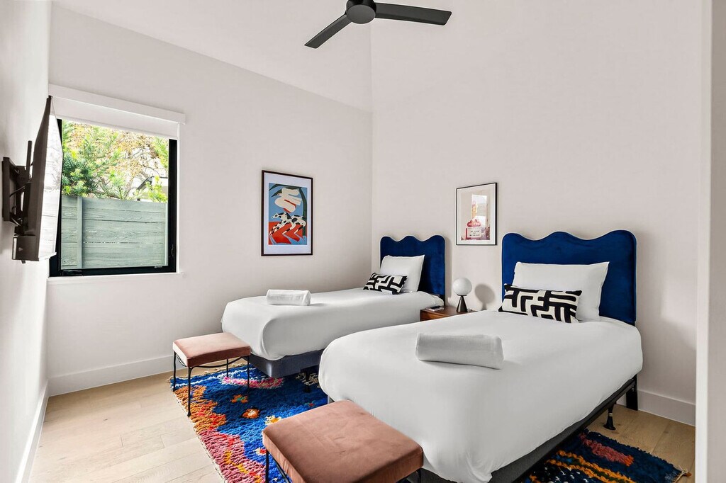 Welcome to this South Austin home, nestled just south of the city's lively core, where you can feel at home in a peaceful spot just a few blocks from South Congress Ave. This 2-bedroom home, complete with outdoor dining, embodies the unique charm and vibrant spirit that make Austin so special. This unit is the second unit and is located behind unit 1. Experience comfort and charm in this inviting retreat, where you'll have access to the entire home, except for one locked storage closet. This thoughtfully designed property offers two cozy bedrooms and two full bathrooms, ensuring ample space for relaxation. Cook up your favorite meals in the fully equipped kitchen, and enjoy the fresh air on the outdoor patios. For your convenience, a washer and dryer are available. Parking includes one driveway space and paid street options. One pet is allowed for an additional $100 fee, and the pet should not be more than 30 lbs. This home is less than 4 blocks away from the famous Congress Avenue in Austin, TX, providing easy access to the city's renowned attractions, live music venues, eclectic dining scene, and outdoor adventures. Kendra Scott Flagship, Magnolia Cafe, and Home Slice Pizza are less than a mile away. Perla's is 0.7 miles away, Jo's Coffee (the "I love you so much" sign) is 0.8 miles away, Cosmic Coffee + Beer Garden is 1.9 miles away, Zilker Park is 2 miles away, Rainey Street District (Restaurants | Bars) is 2.2 miles away, Nomadic Beerworks is 2.2 miles away, St Elmo Brewing Company is 2.8 miles away, The Austin Winery is 3 miles away, and H-E-B is 3.5 miles away. This area provides many ways to get around Austin, whether it is a rideshare, electric scooter, bicycle, or personal vehicle. Smoking is not allowed, and fireworks and parties or events are not allowed. Quiet hours are from 10 PM to 7 AM. The primary guest must be at least 21 years old and present for the entirety of the stay. For safety reasons, lighting candles is not allowed inside the property. The City of Austin waste collection is on Tuesday for this property, so please do not place any trash bags into compost or recycling. If any furniture is moved, please place it back in the original space where it was found. Additional charges, including shipping fees, may apply if personal items are left behind. In the event that you need to use the hard key, please place it back in the lockbox before departing; failure to return any keys used to the lockbox will result in a $50 replacement fee per key. Landscaping is scheduled for the 15th and 28th of the month, between 10:00 AM and 12:00 PM. Please do not set the home's thermostat above 76 (heating) or below 68 (cooling). To avoid overloading the system, please adjust the thermostat by no more than 2 degrees per hour and keep the doors and windows closed as much as possible. A minimum smoking fee of $250 will be charged; however, the total charge may be higher if the property's condition renders it temporarily unrentable. Registration Number: OL 2025 056175 [SI]