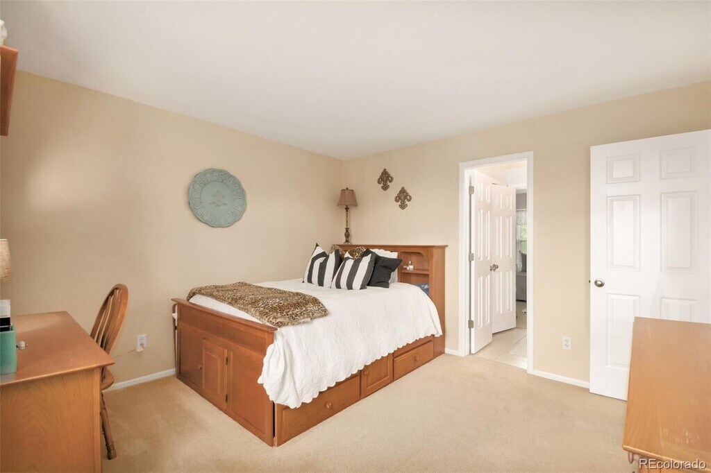 Location, location, location! Enjoy the expansive park view from your back patio and all rear-facing windows! Even exit your back gate directly into the park from your backyard. This beautiful two-story home is located near the top of a quiet street and backs to Timberline Park. It features vaulted ceilings upon entry, hardwood floors throughout the first floor, and a gas fireplace in the family room. It includes an updated kitchen with quartz countertops and custom backsplash. Upstairs you will enjoy a large master suite with a private bath and walk-in closet. There are two additional spacious rooms (one with another large walk-in closet) adjoined by a jack-and jill bathroom. This home also features upstairs laundry. There is a finished basement. The basement has a non-conforming fourth bedroom and 1/2 bath. The backyard also features a 6-foot cedar, privacy fencing on both sides. This home includes a three-car garage, large storage shed, AC, newer roof with hail resistant shingles, and newer windows, too. This home is situated in the Douglas County School District, and close to Eagle Ridge Elementary, Timberline Park and numerous Highlands Ranch walking and jogging trails, too. Located just 26 miles south of downtown Denver with easy access to I-25, C-470, E-470, the Lincoln Light Rail station and more. 11 month initial lease. NO SMOKING!! Dogs ok with approval and fee. NO CATS! All persons over 18 living in the property must have a background check. Application fee $30/person. Tenancy requirements: Average 650 credit score from all applicants, verifiable 2x rent in income and must pass a background check. Security deposit due at lease signing.