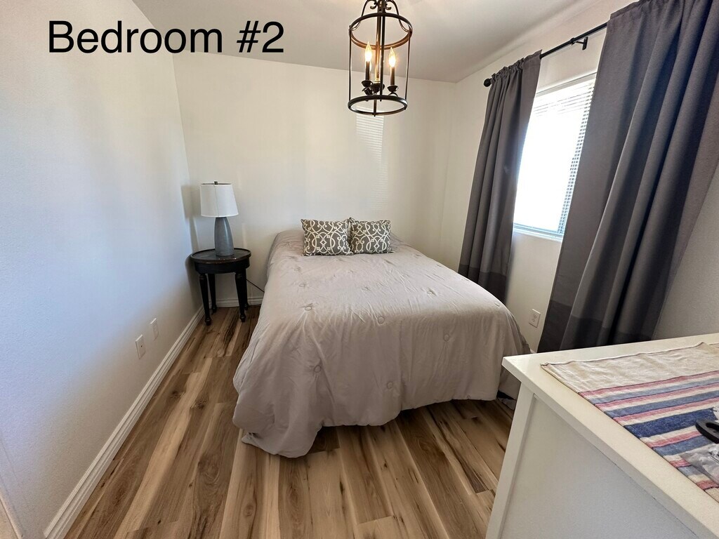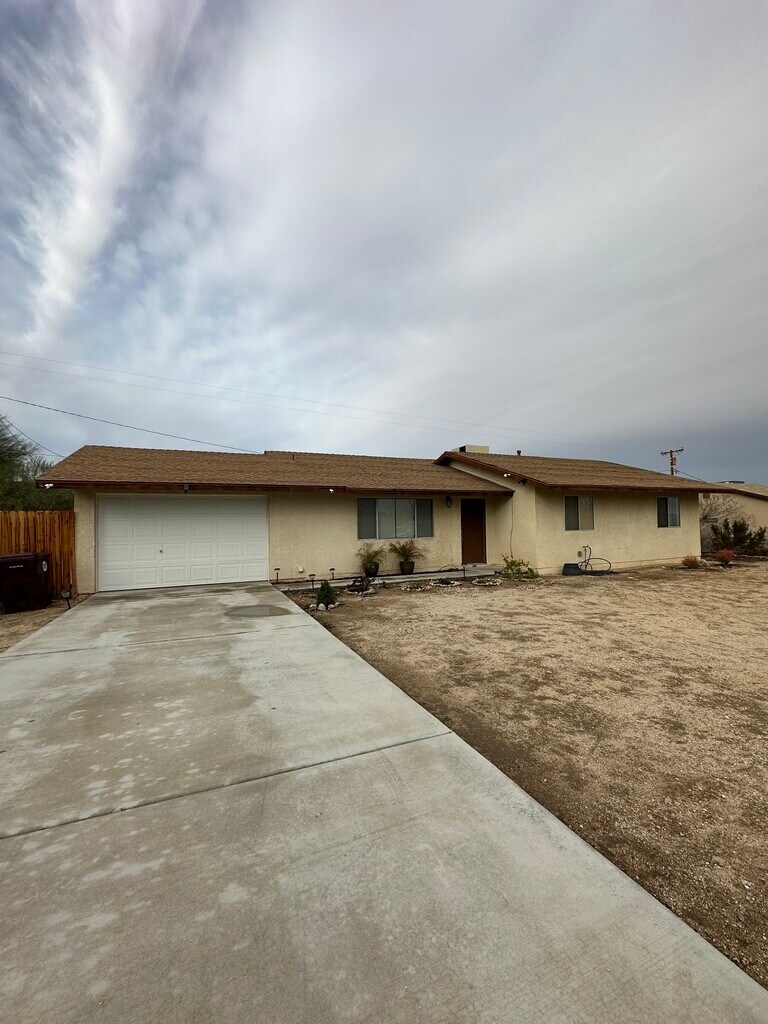 Furnished 3 bedroom 2 bathroom home for rent in Twentynine Palms near Joshua Tree National park. The home is move in ready and is upgraded with new flooring and freshly painted walls. Kitchen is equipped with new appliances including a stainless steel refrigerator, stove and microwave. Washer machine is included. One car garage with a long driveway that makes for good space for parking. This 1100 sq ft home has an open floor plan that makes it feel spacious and roomy. The home would make a great fit for a family or marines with a short distance to the military base. Pet friendly. *shed in the backyard not included* Available to move in as soon as March 2026 For more questions or to schedule an appointment to view the property please call . Katarina
