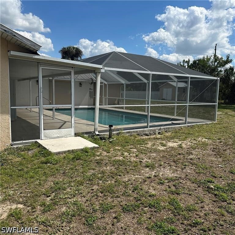 Spacious and versatile rental opportunity in Lehigh Acres! This well-located home features 3 bedrooms and 2 bathrooms,plus an additional private suite with 1 bedroom and 1 bathroom with its own independent entrance,perfect for use as an efficiency,guest quarters,or extended family living. Enjoy a large fenced lot ideal for outdoor living,entertaining,and family gatherings,complete with a screened-in pool and patio area,perfect for enjoying summer afternoons comfortably with family and friends. The property offers ample parking with a front driveway that accommodates up to four vehicles,plus additional side parking. Connected to city water,Conveniently located near highly rated schools,shopping,and major roadways. This home offers great flexibility and plenty of space for a large family. Don’t miss this opportunity to live comfortably with your entire family in one property!