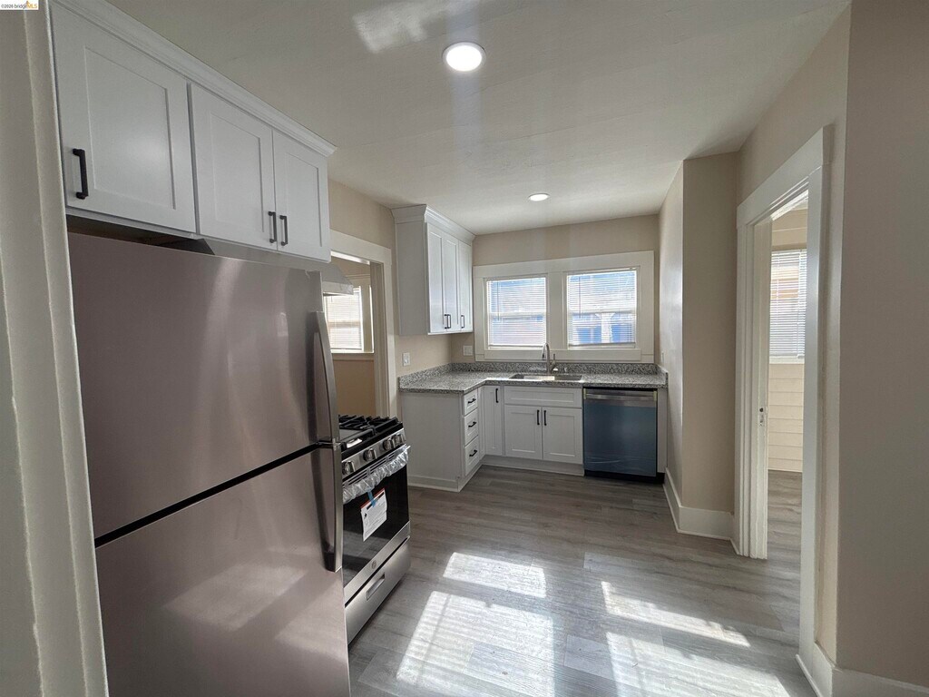 Pittsburg location close to schools,shopping,BART and freeway! Corner lot! Enclosed rear patio! 2 Bedroom house close to downtown. Double pane windows,updated bathroom and kitchen. Stove,refrigerator,separate laundry room,new flooring and paint throughout,single car garage and off-street parking,paved backyard,and close to BART.