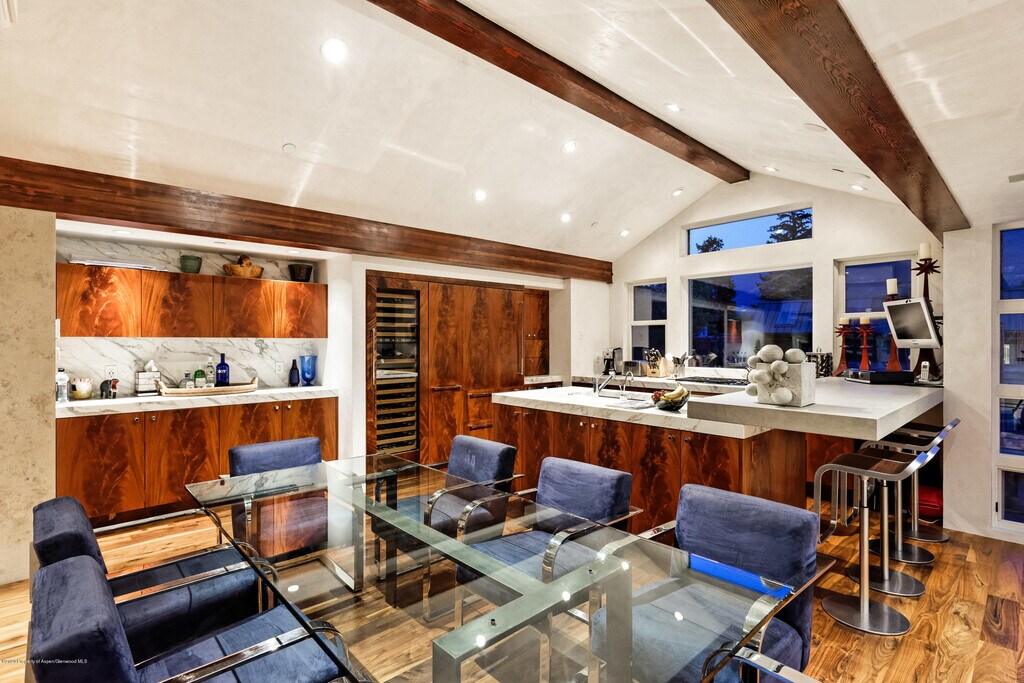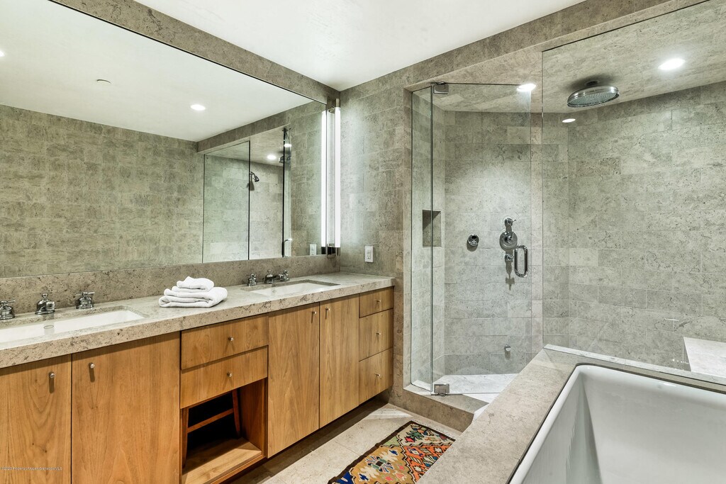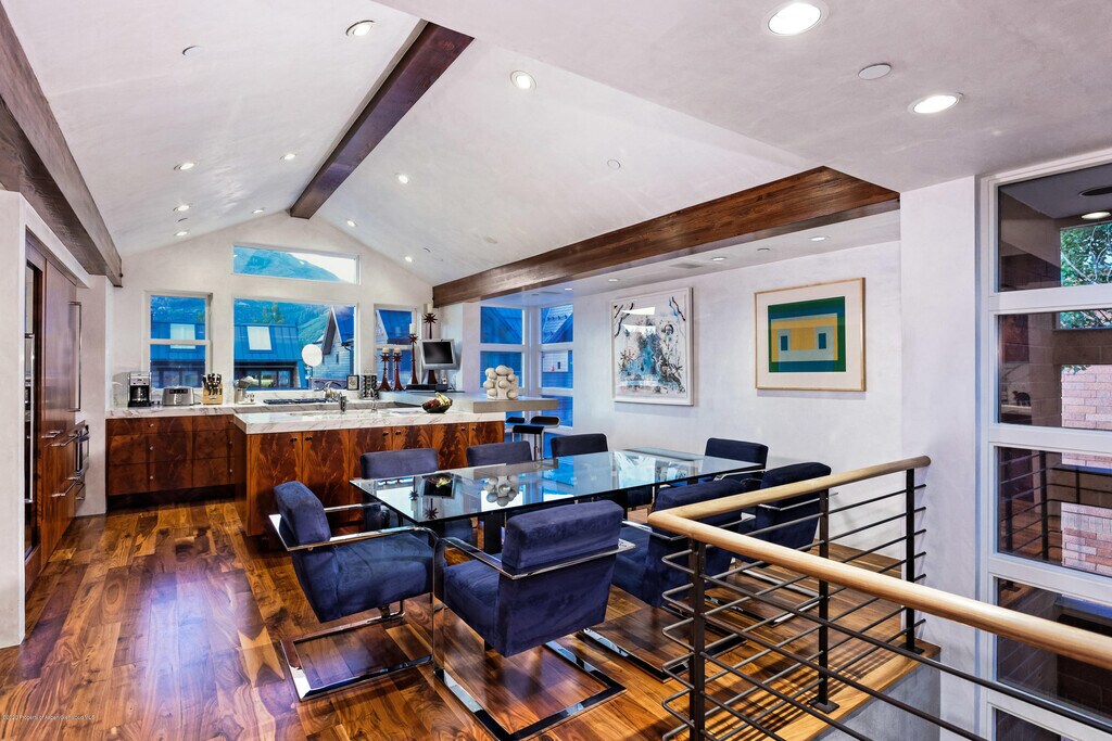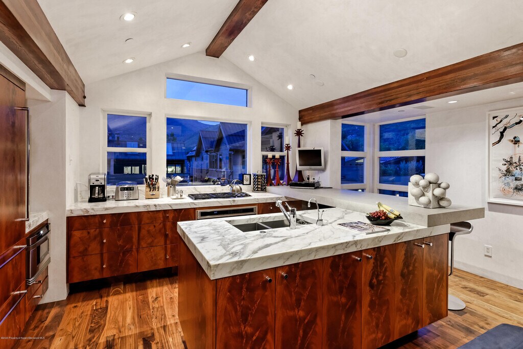 Exquisite home representing the pinnacle of downtown Aspen living. This impeccable three-bedroom four bath townhome has incredible light with an open kitchen and living and views toward Aspen Mountain. Beautiful remodel including walnut floors,bronze detailing,slab-limestone and a very efficient layout. Deck,hot tub,and off-street parking. Walk everywhere including only three blocks to the gondola.
