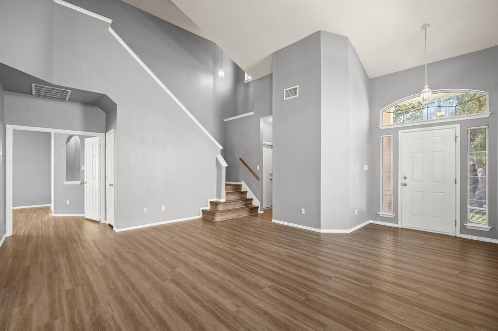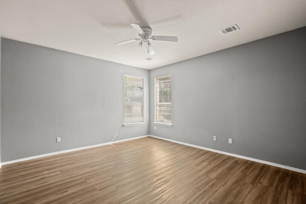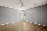 Attractive stone home with natural lighting, wood-look flooring, and many spaces for your favorite decor and artwork. Upon entry, a large family room with two-story ceilings opens to a second living area upstairs with a large closet. The kitchen includes a window over the sink and a pantry. The spacious primary suite includes an art niche, ceiling fan, double vanity, and a walk-in closet. Both secondary bedrooms are roomy. The laundry room includes a pleasant window. The backyard has a patio and plenty of space for recreation. This home is right next to Old Settler's Park, the Dell Diamond, and Kalahari Water Resort! Easy hop on to Hwy 79, which leads to 130 and I35. New AC in 2023.