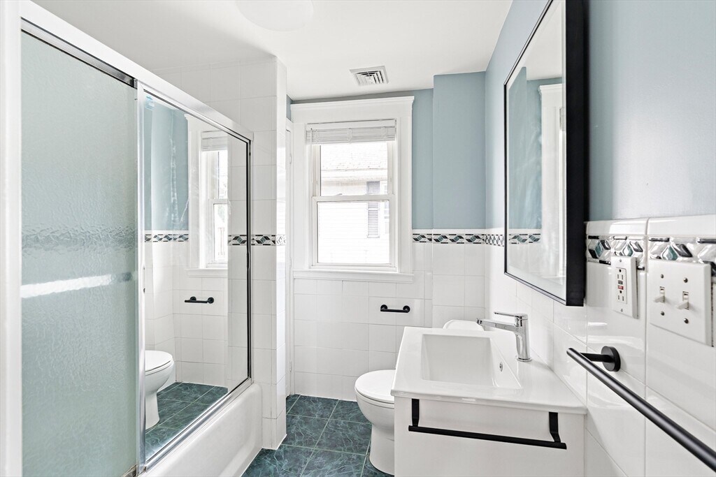 Completely renovated top floor 2 bedroom plus office,1.5 bathroom apartment in East Watertown on the Cambridge line. This sun drenched unit features an open floor plan highlighting the new contemporary kitchen with stainless steel appliances,induction range,ample cabinet space and stone wrap around counters. Two generously sized bedrooms one including a half bath and a separate home office or play room area. Large enclosed front porch adds a host of additional living space for the warmer months. New energy efficient heating and air conditioning system just installed. Freshly painted throughout with refinished hardwood floors,private storage and laundry in the basement and two car driveway parking and large shared yard. Located on the 71 bus line with direct access to Harvard Square. Near Arsenal Yards as well as small local boutique markets. Available now! MLS# 73435946