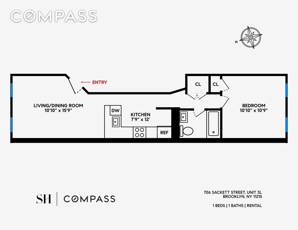 There is currently a 1 Bed 1 Bath Condo for rent sq ft listed at 706 Sackett St. It is Available Now.