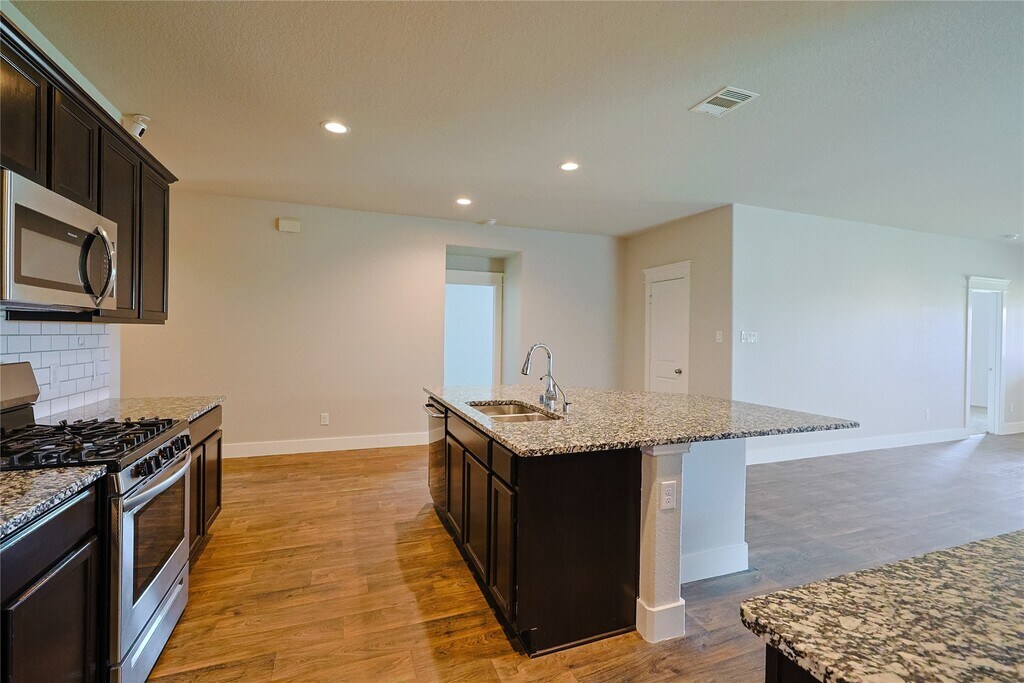 Nestled on a spacious corner lot,this stunning single-story home features 3 bedrooms & 2 baths with high ceilings and elegant wood-look vinyl flooring throughout,plus cozy carpeting in the bedrooms. The open-concept family room flows seamlessly into a modern kitchen,complete with granite countertops,tall cabinetry,a large island,and a pantry. The primary suite offers a dual-sink vanity,oversized shower,and generous walk-in closet. Two additional bedrooms and a full bath provide ample space for family or guests. The spacious backyard includes an extended covered patio,perfect for outdoor relaxation. Community amenities include a covered picnic area,playground,splash pad,and more! This home perfectly blends style,comfort,and convenience! Schedule a showing today! MLS# 50253949