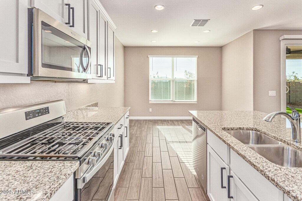 Upgraded in all the right places! This beautiful 4 bed / 2 bath home features wood-like tile flooring throughout,kitchen with white shaker cabinets,granite countertops,island and stainless steel appliances. Open floor plan creates an inviting space while the primary suite is split from the secondary bedrooms. Backyard features artificial turf and large covered patio with no neighbors behind. Great corner lot with split 3 car garage and extended driveway for additional parking. GREAT LOCATION in North Phoenix and close to all freeways. Must see!